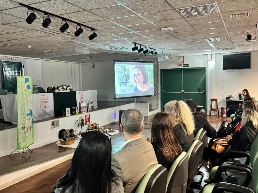 Representando a Secretaria Municipal de Assistência Social, a coordenadora do CRAS II – Linho, Elizabete Pereira Machado, explicou aos acadêmicos como é estruturado o trabalho dos CRAS, desde o acolhimento das famílias até os encaminhamentos para outros serviços da rede socioassistencial, garantindo direitos e fortalecendo vínculos comunitários.