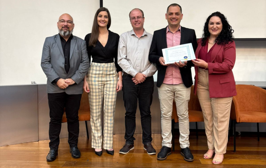 A entrega do selo e do certificado ocorreu em Porto Alegre e contou com a presença da secretária de Administração, Aline da Costa, do diretor-presidente do IEP, Renato Toso, e da secretária adjunta de Administração, Roberta Bonatti, e do diretor Financeiro do IEP, Diones Weber, que representaram o município na cerimônia.