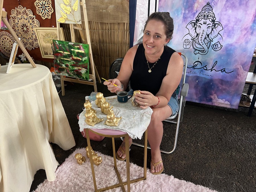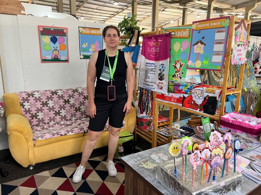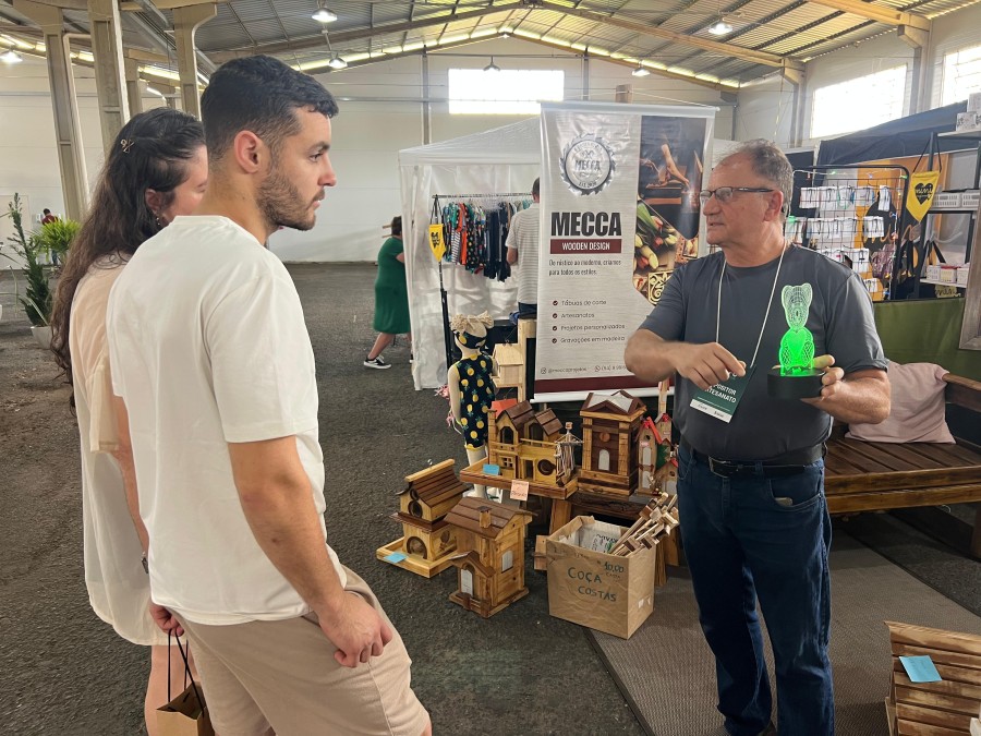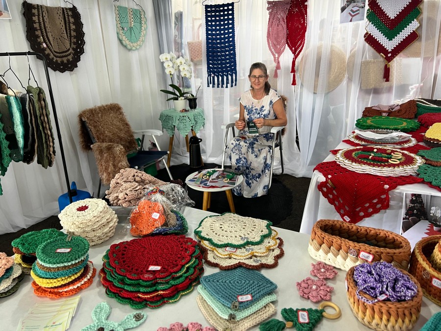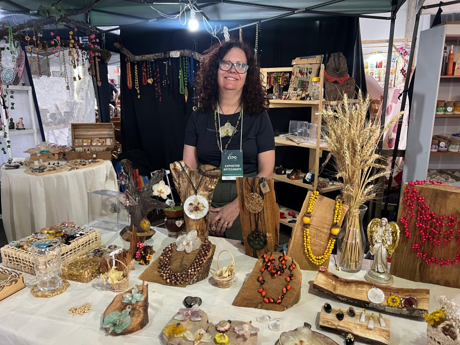 O espaço reúne peças únicas e autorais, confeccionadas em diferentes técnicas e materiais, como madeira, tecido, crochê, tricô, macramê, cerâmica, vidro, MDF, couro, materiais recicláveis, biojoias, pinturas, costura criativa, esculturas, acessórios, decoração e produtos personalizados. A diversidade de estilos reforça a criatividade dos expositores e valoriza o trabalho manual como expressão cultural e fonte de geração de renda.