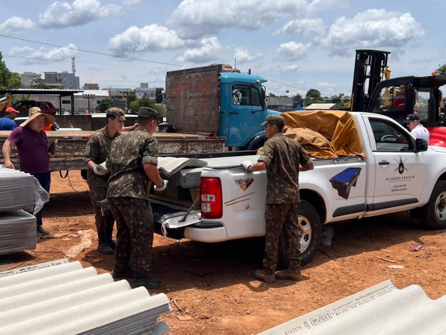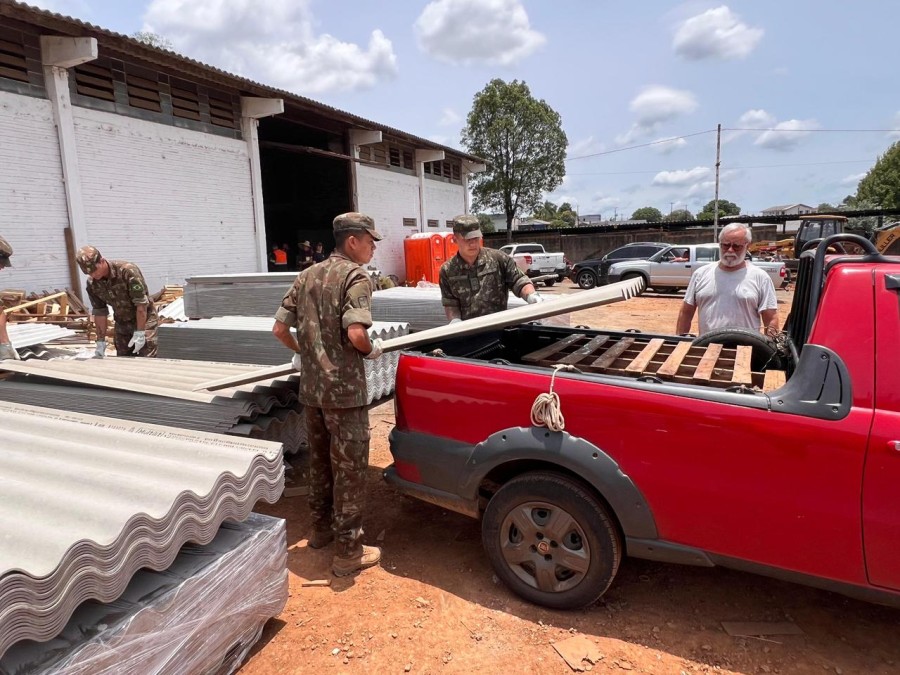 Comando das operações permanece no GRAU; distribuição de telhas, limpeza urbana, apoio social e orientações sobre seguro habitacional continuam em ritmo intenso.