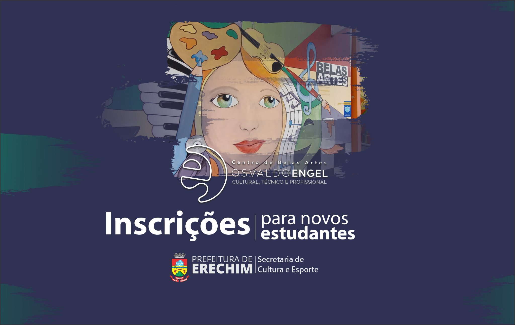 A Secretaria Municipal de Cultura e Esporte informa que a partir de terça-feira (1), estarão abertas as inscrições para novos estudantes do Centro de Belas Artes Osvaldo Engel – cultural, técnico e profissional.