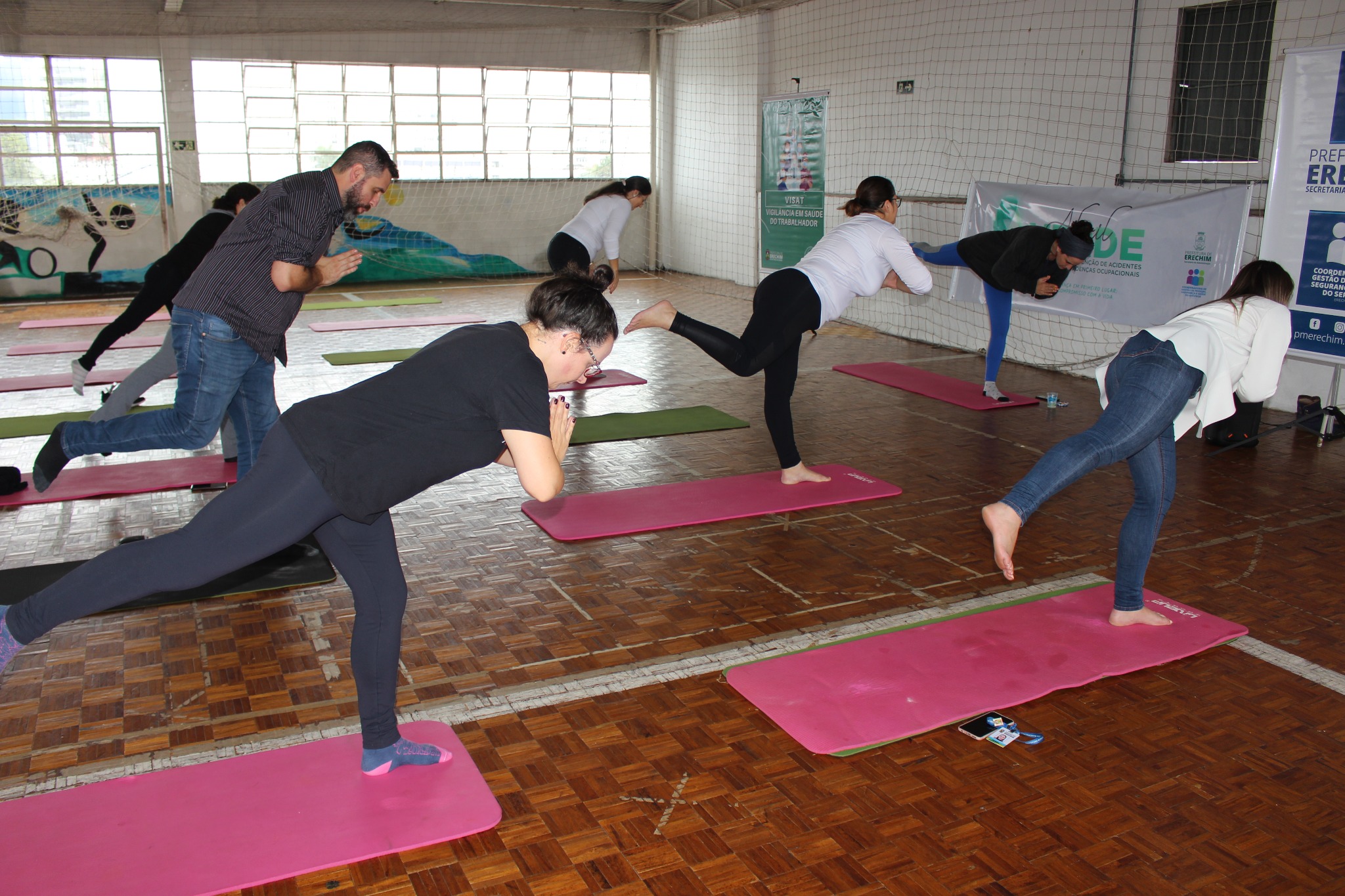 A atividade, realizada no Ginásio da EMEI Barão do Rio Branco, foi coordenada pela instrutora de yoga Daniela Carina Michelin e integrou a programação do Abril Verde, que é uma campanha de prevenção de acidentes de trabalho e doenças ocupacionais, com o slogan ‘Segurança em primeiro lugar – um compromisso com a vida’.