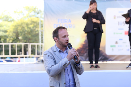 Encerrando os pronunciamentos, o prefeito em exercício, Flávio Tirello, disse que o local será sim a Praça do Livro durante a próxima semana. "Minha mãe lá atrás já me dizia que conhecimento é a única coisa que ninguém tira da gente, então temos a alegria novamente de ter a Feira do Livro na Praça Jayme Lago, no pós-pandemia, um lugar de fácil acesso, bem no centro", comentou. Tirello ainda exaltou a importância da leitura e dos livros. "A leitura pode não mudar vidas, mas muda as pessoas e as pessoas mudam as vidas e mudam pra melhor. Em um mundo tão tumultuado, isso é muito importante", finalizou o prefeito em exercício, Flávio Tirello.