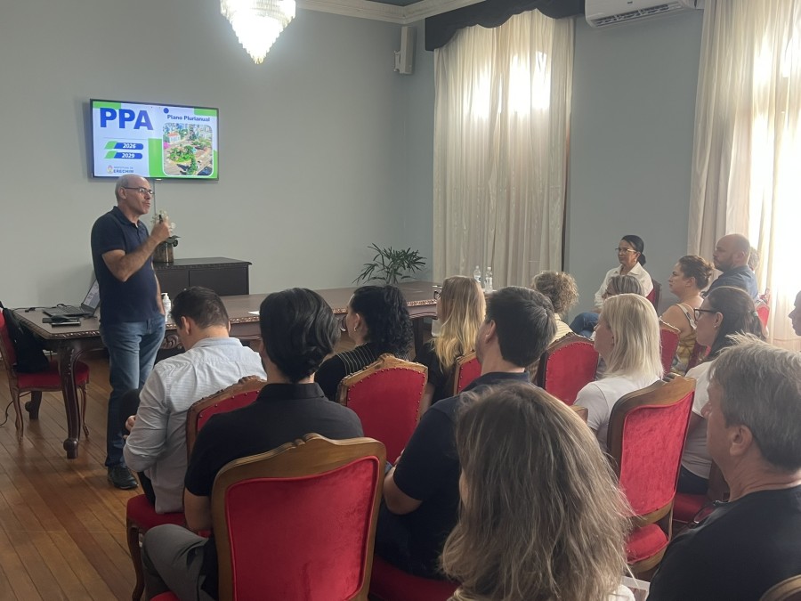 Um encontro na tarde desta quinta-feira (27), no Salão Nobre da Prefeitura de Erechim, marca o início da elaboração do Plano Plurianual (PPA) 2026-2027, sob coordenação da Secretaria Municipal da Fazenda e da Secretaria Municipal de Planejamento, Mobilidade Urbana e Segurança Pública.
