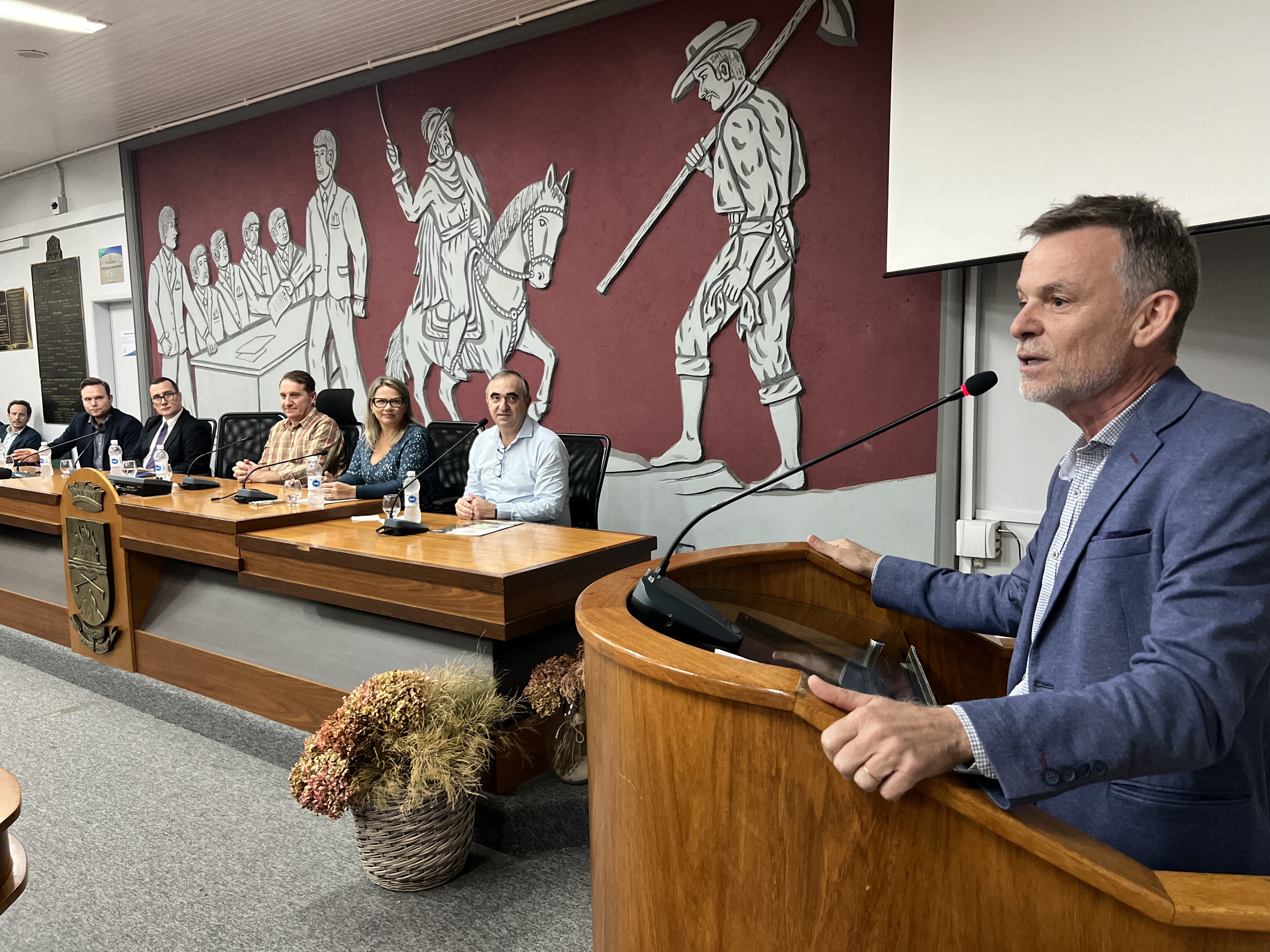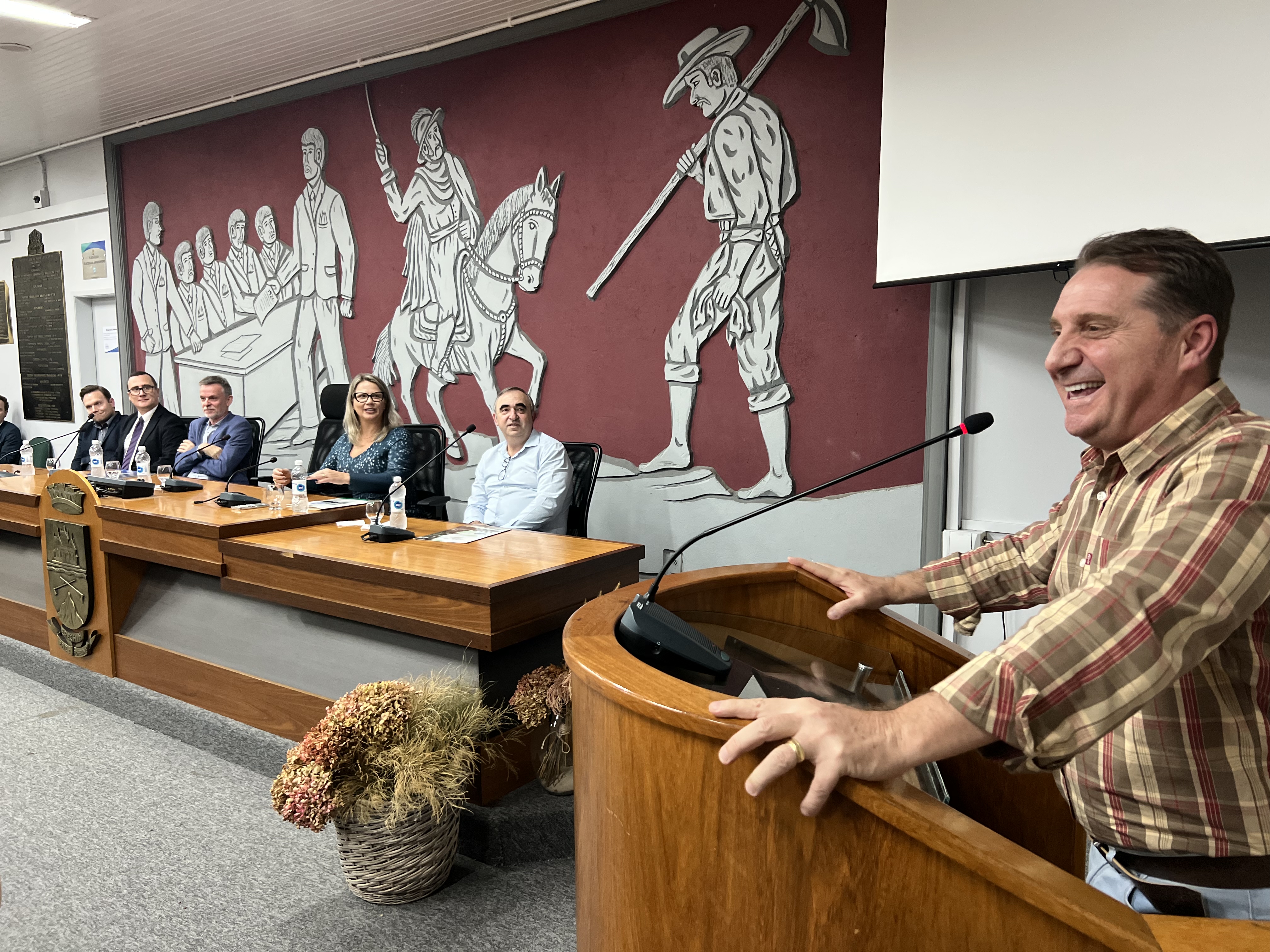 Estiveram presentes o prefeito de Erechim, Paulo Polis; o secretário e o adjunto de Planejamento, Mobilidade Urbana e Segurança Pública, Jackson Arpini e Flávio Pitt; representando a Câmara de Vereadores, a parlamentar Clarice Moraes; o promotor de Justiça representando a Promotoria de Justiça Especializada de Erechim, Fabrício Gustavo Allegretti; representando os Cartórios de Registro de Imóveis de Erechim, Julian Cristofes Belotto; representando a Comissão REURB, Ariane Pasuch; secretários de Governo; vereadores e imprensa.