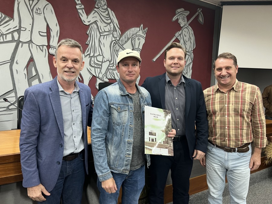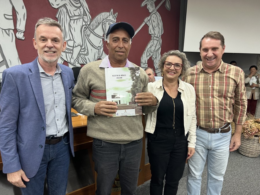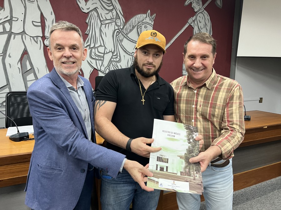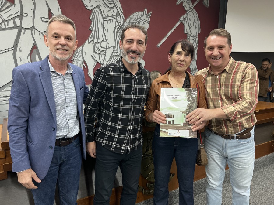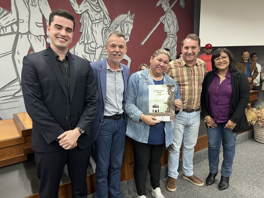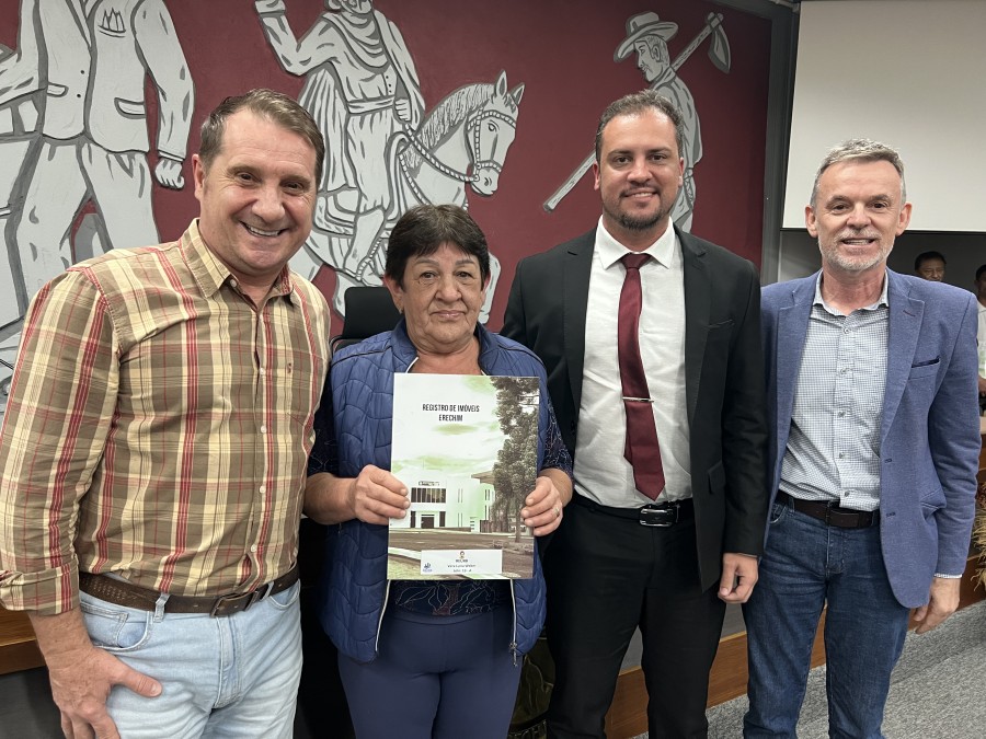 A Prefeitura de Erechim, através da Secretaria de Planejamento, Mobilidade Urbana e Segurança Pública realizou, na noite desta segunda-feira (26), no Plenário da Câmara de Vereadores a primeira entrega de matrículas do programa municipal ‘Escritura na Mão’, iniciativa da Prefeitura de Erechim, a que auxilia a população na Regularização Fundiária (REURB).
