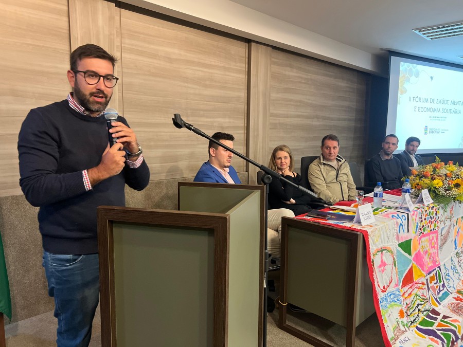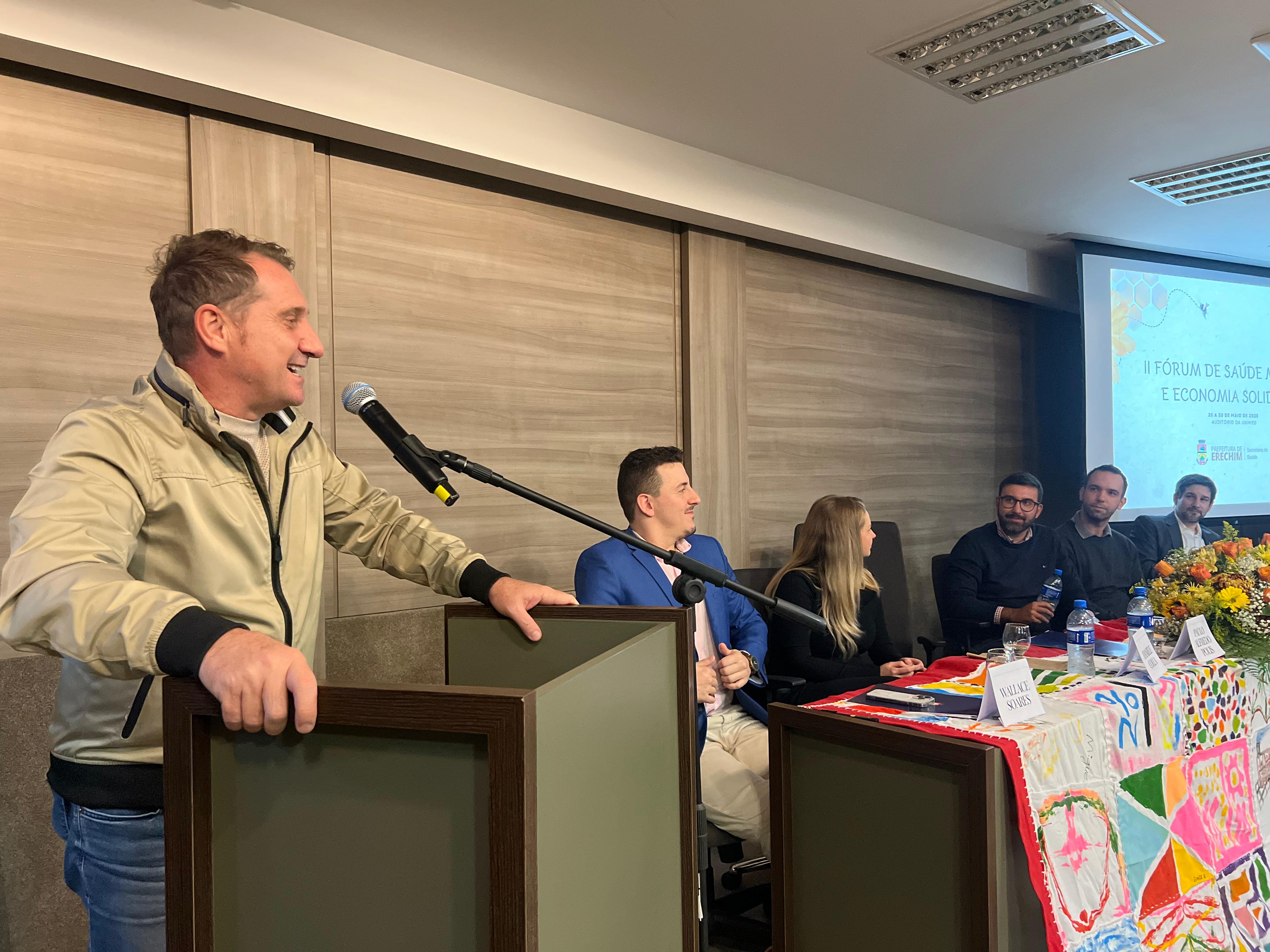 Para o prefeito Paulo Polis é urgente resgatar o valor do trabalho coletivo, da escuta mútua e do cuidado com o outro. “Este evento expressa justamente isso: a construção de pontes entre saúde, cultura, economia e dignidade. Erechim é uma cidade que sonha. E mais do que isso: uma cidade que realiza. E quando falamos de saúde mental, falamos de mais do que atendimento — falamos de reconhecimento, de inclusão, de pertencimento e de justiça social. A economia solidária nos desafia a olhar para o trabalho não como mercadoria, mas como expressão da vida e possibilidade de reexistência. E por isso ela é essencial para pensarmos o futuro das nossas cidades. Quero parabenizar toda a equipe da saúde mental, os parceiros institucionais, os coletivos culturais, e principalmente os usuários da Saúde Mental, por mostrarem que é possível construir políticas públicas com afeto, coragem e radicalidade democrática. Que este fórum seja mais do que um evento. Que seja um movimento contínuo de transformação da cidade e das nossas práticas”, disse o prefeito.