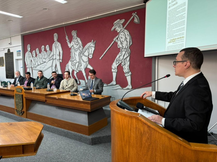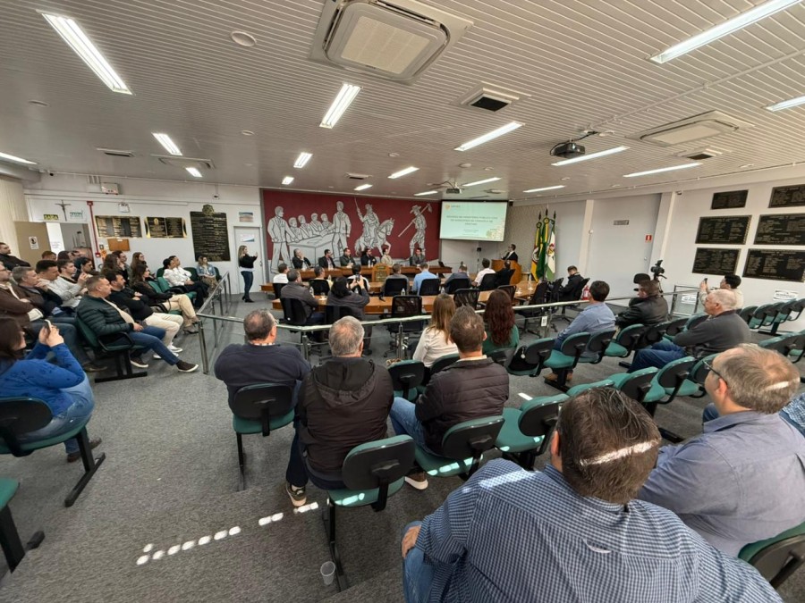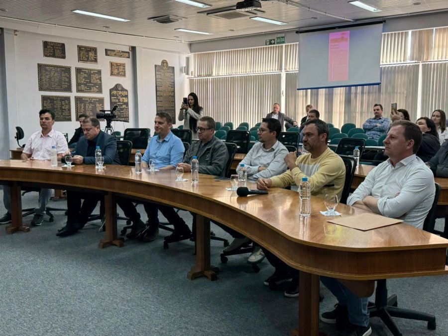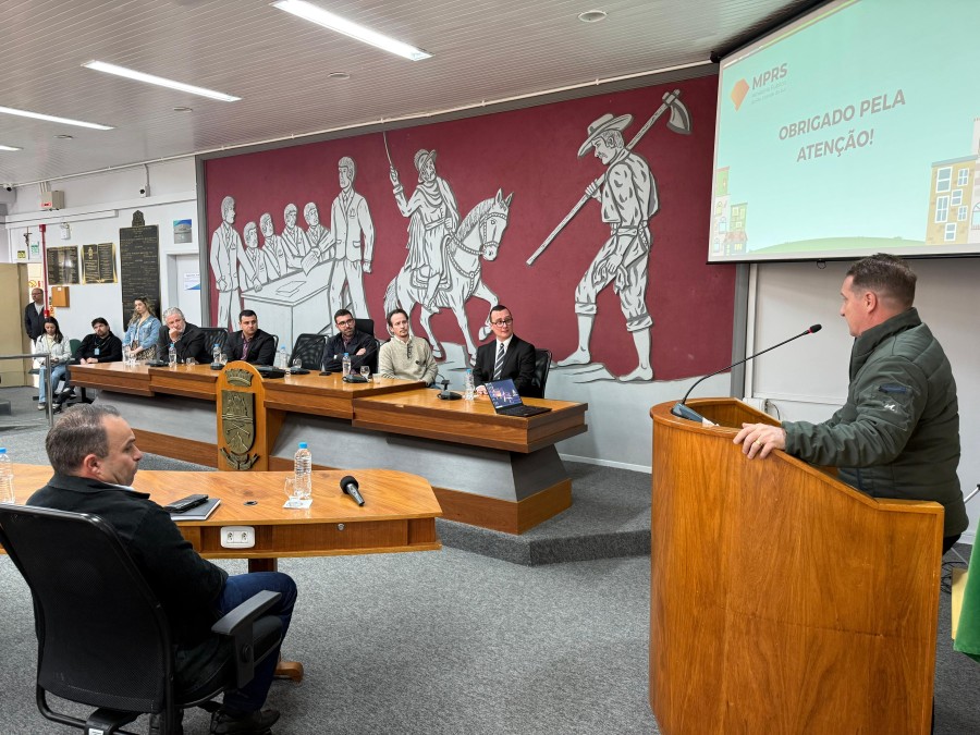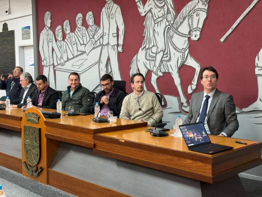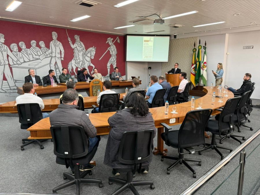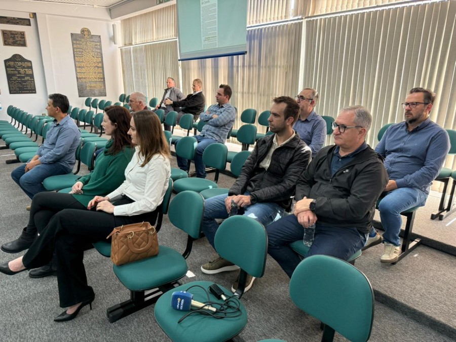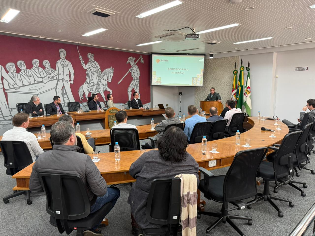 A Câmara de Vereadores de Erechim recebeu, na manhã desta sexta-feira (26), uma reunião promovida pelo Ministério Público do Rio Grande do Sul (MPRS), por meio da Promotoria de Justiça Especializada de Erechim. O encontro, foi conduzido pelo promotor de Justiça Fabrício Allegretti, e reuniu prefeitos, procuradores jurídicos, secretários municipais e vereadores dos municípios que integram a Comarca de Erechim. Na mesa de abertura estiveram, o prefeito de Erechim, Paulo Polis, o presidente da Câmara de Vereadores, vereador Fifo Parenti, os promotores de Justiça Fabrício Allegretti e Guilherme Martins, o procurador adjunto de Erechim, Rogério Aguilar e o advogado e procurador do município de Aratiba, Abrão Safro.