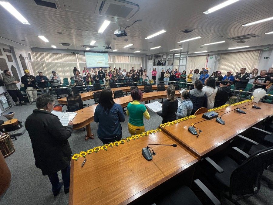 Evento reuniu autoridades, profissionais e comunidade no plenário da Câmara de Vereadores, destacando a importância da prevenção e do cuidado em saúde mental.