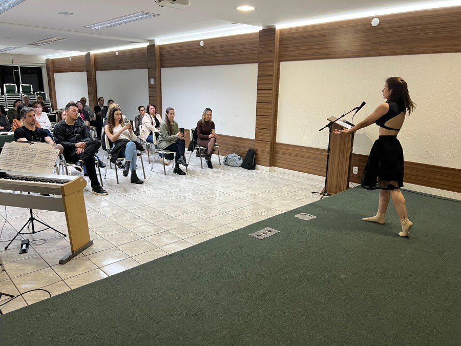 Evento reuniu música, dança e artes visuais em noite especial no auditório da CDL, reafirmando o compromisso com a formação artística e cidadã.