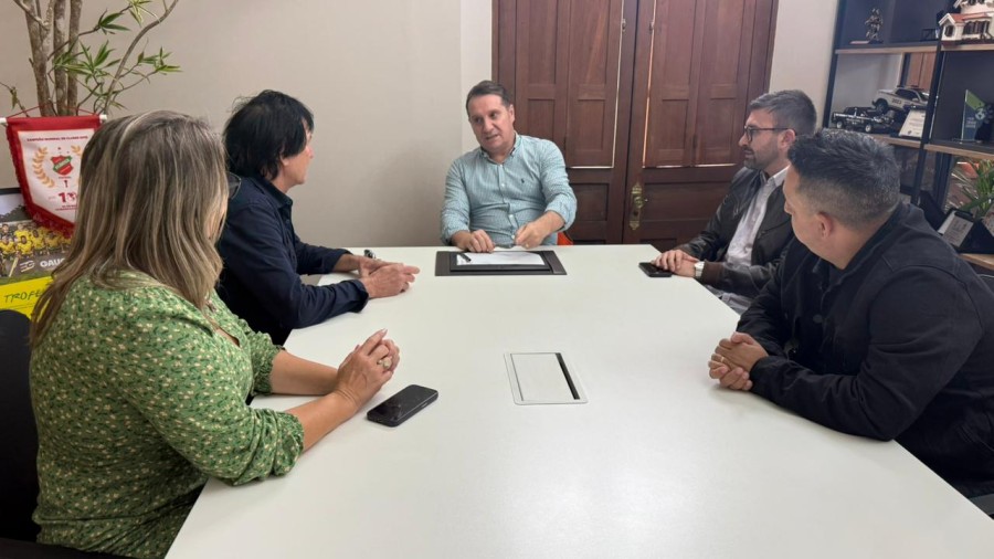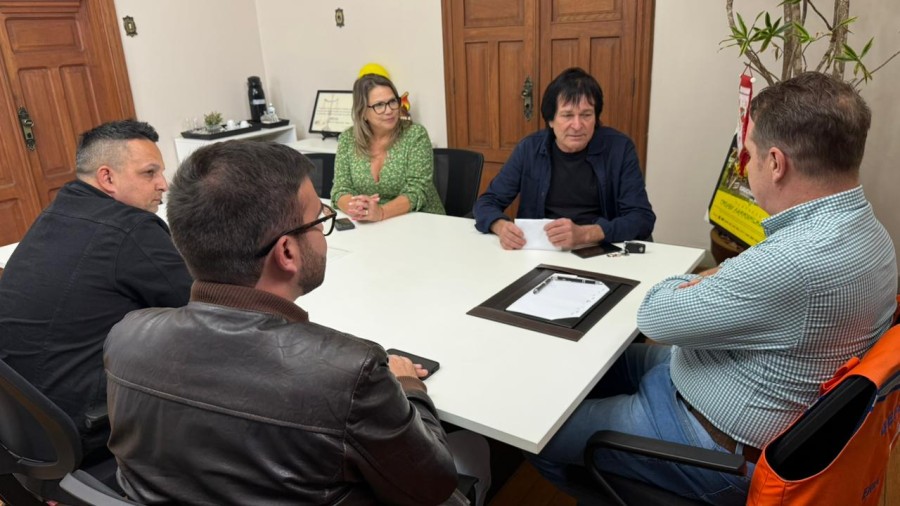 O prefeito Paulo Polis, o presidente da Câmara de Vereadores, Fifo Parenti, e a líder de governo, vereadora Clarice Moraes, receberam na tarde de quarta-feira (8) os integrantes da Banda Passarela, que celebra 30 anos de trajetória levando o nome de Erechim para todo o país.