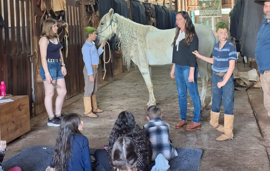 Durante a programação, o grupo participou de contação da história do cavalo, interação com os animais, visita guiada ao museu e trilha ecológica. O momento foi encerrado com um almoço campeiro para o grupo da manhã e um lanche especial para o grupo da tarde.