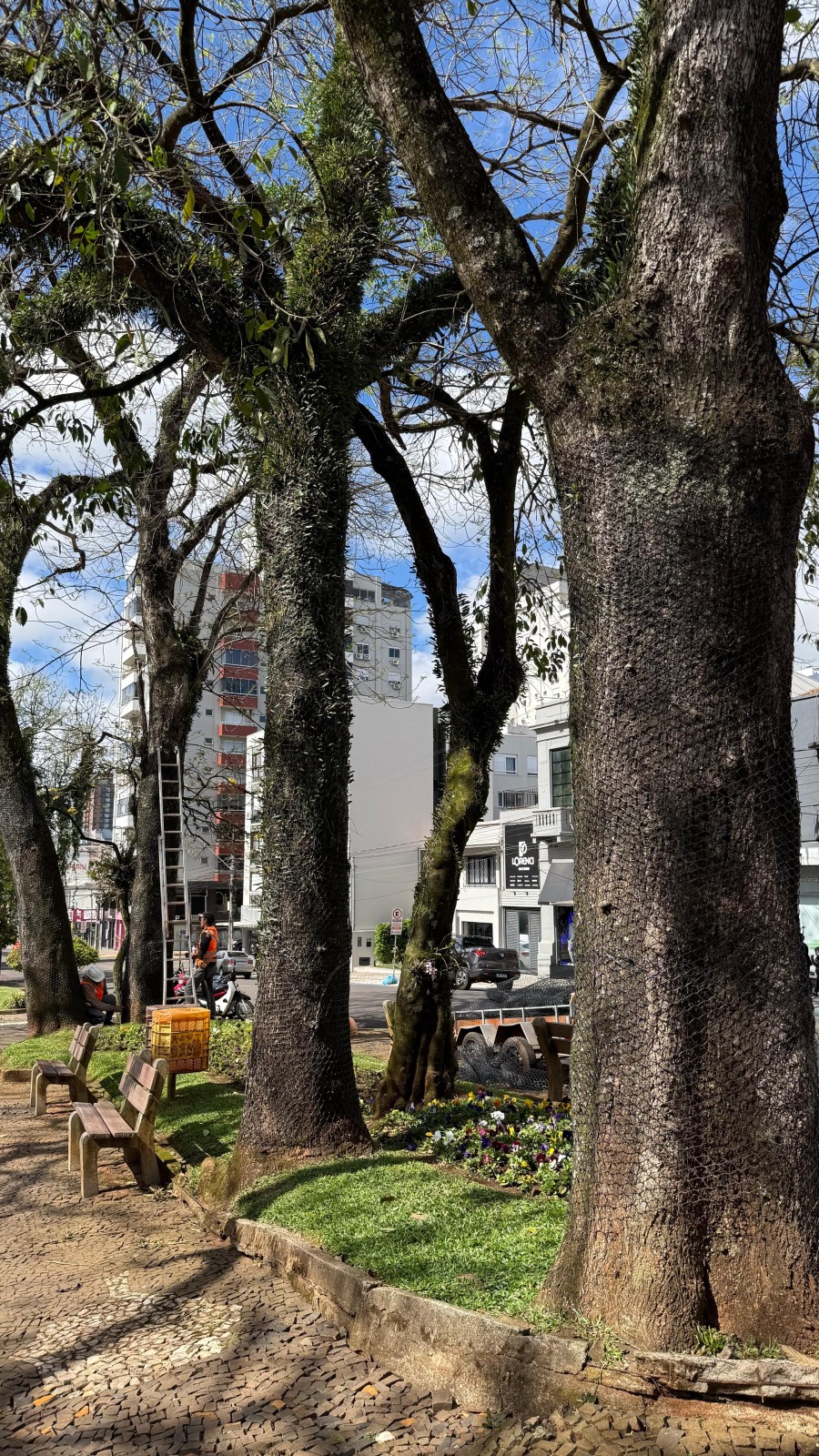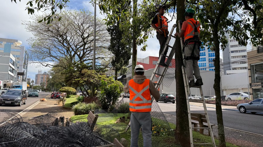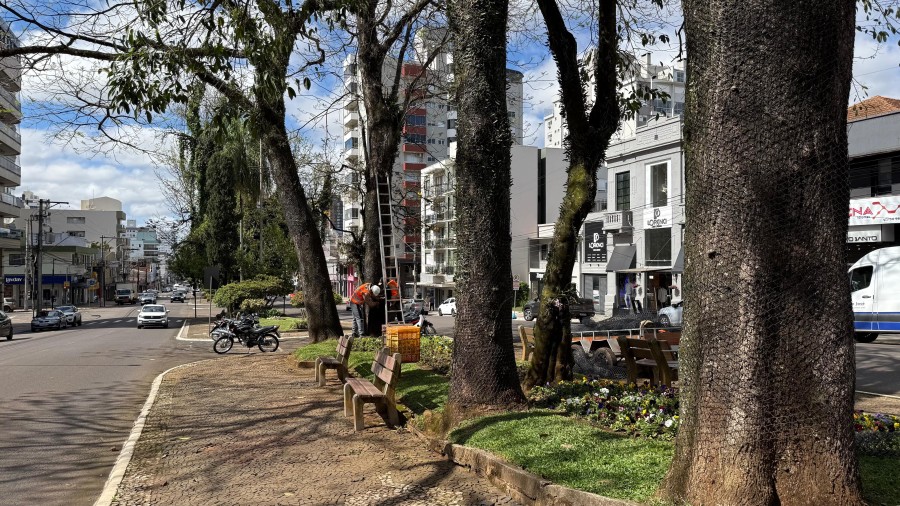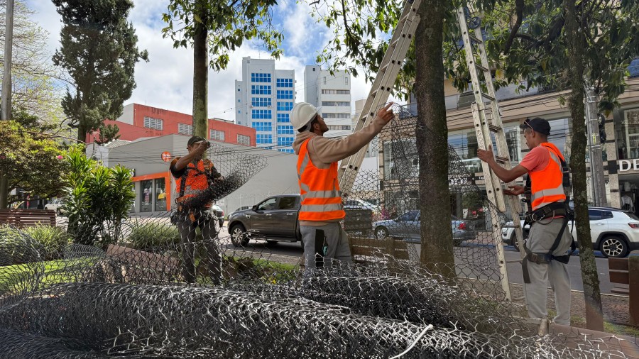 Erechim já começou a se preparar para o Natal 2025. Desde a última terça-feira (07), a empresa responsável pela decoração iniciou a colocação das telas plásticas nas árvores das principais avenidas e praças da cidade, preparando o espaço para a instalação das luzes natalinas.