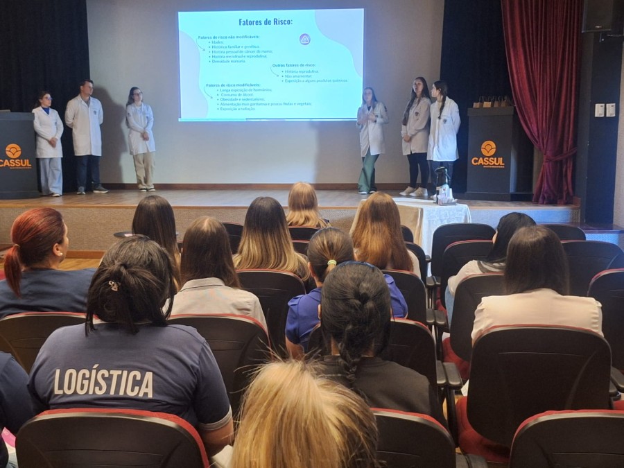 Nesta terça-feira (14), a equipe da Unidade Básica de Saúde (UBS) Estêvão Carraro realizou uma ação especial do Outubro Rosa na empresa Cassul. O encontro teve como objetivo orientar e sensibilizar as colaboradoras sobre a prevenção do câncer de mama e do colo do útero, destacando a importância do autocuidado e da realização dos exames preventivos.