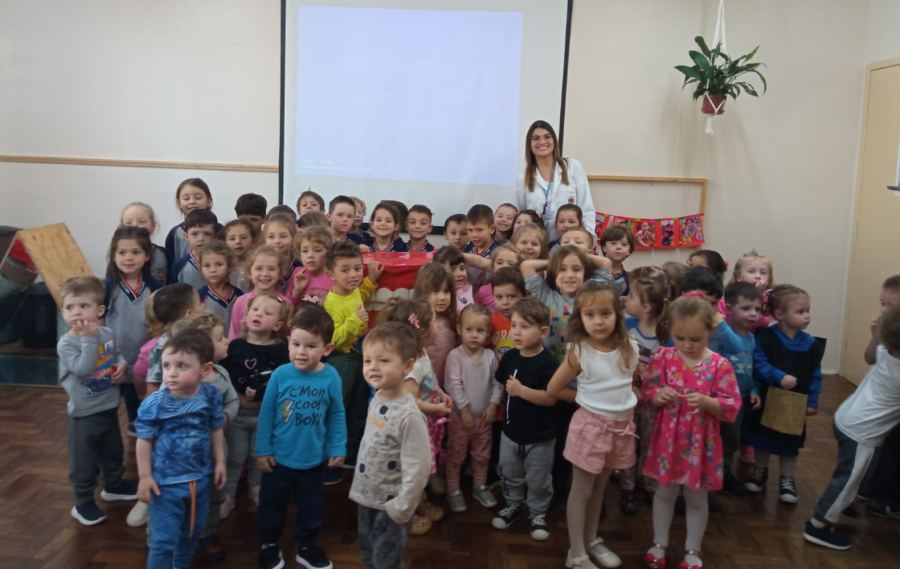 A Escola Municipal de Educação Infantil Bôrtolo Balvedi recebeu a equipe de saúde para mais uma importante ação do Programa Saúde na Escola (PSE). A atividade contou com palestra educativa, escovação supervisionada e distribuição de kits de higiene bucal para os alunos.