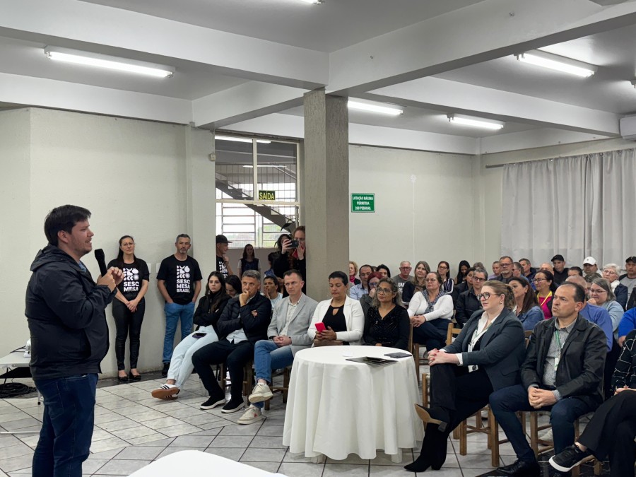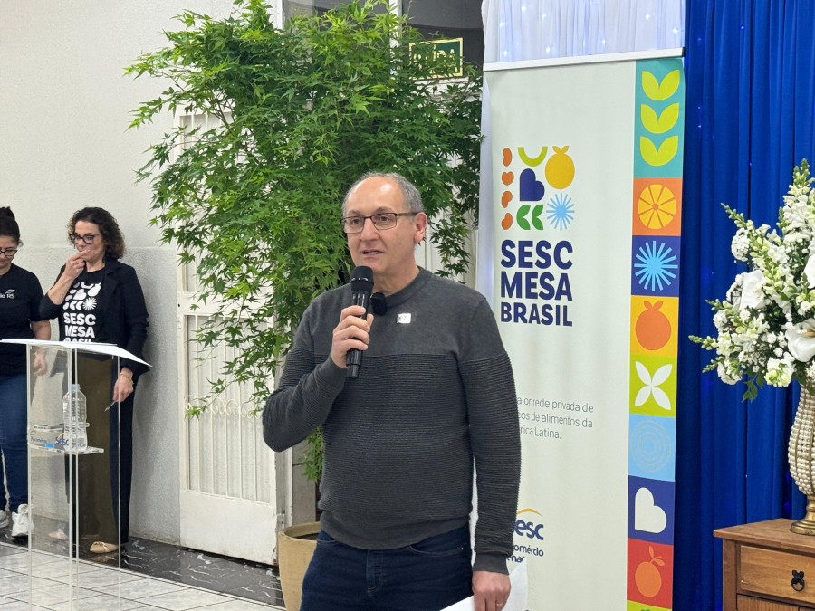 Representando o prefeito de Erechim, Paulo Polis, o secretário de Assistência Social, Micael Kasmirski, ressaltou a importância do Sesc Mesa Brasil para o fortalecimento da segurança alimentar e nutricional no município. Ele também destacou o apoio da Prefeitura de Erechim à iniciativa, com ações que garantem sua manutenção — como a locação do imóvel, pagamento de despesas de água, luz e telefone, além do fornecimento de combustível para os veículos que realizam as entregas dos alimentos arrecadados diariamente.