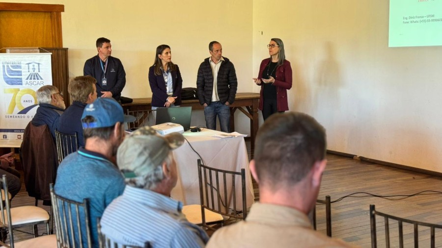A programação iniciou conduzida pelos técnicos da Emater/RS-Ascar Luiz Angelo Poletto e Antonio Carlos Leite de Borba, seguida de palestras de profissionais reconhecidos, como Diniz Fronza (UFSM), Carlos Alberto Flores (aposentado da Embrapa) e Rudinei de Marco (Eurocompany).