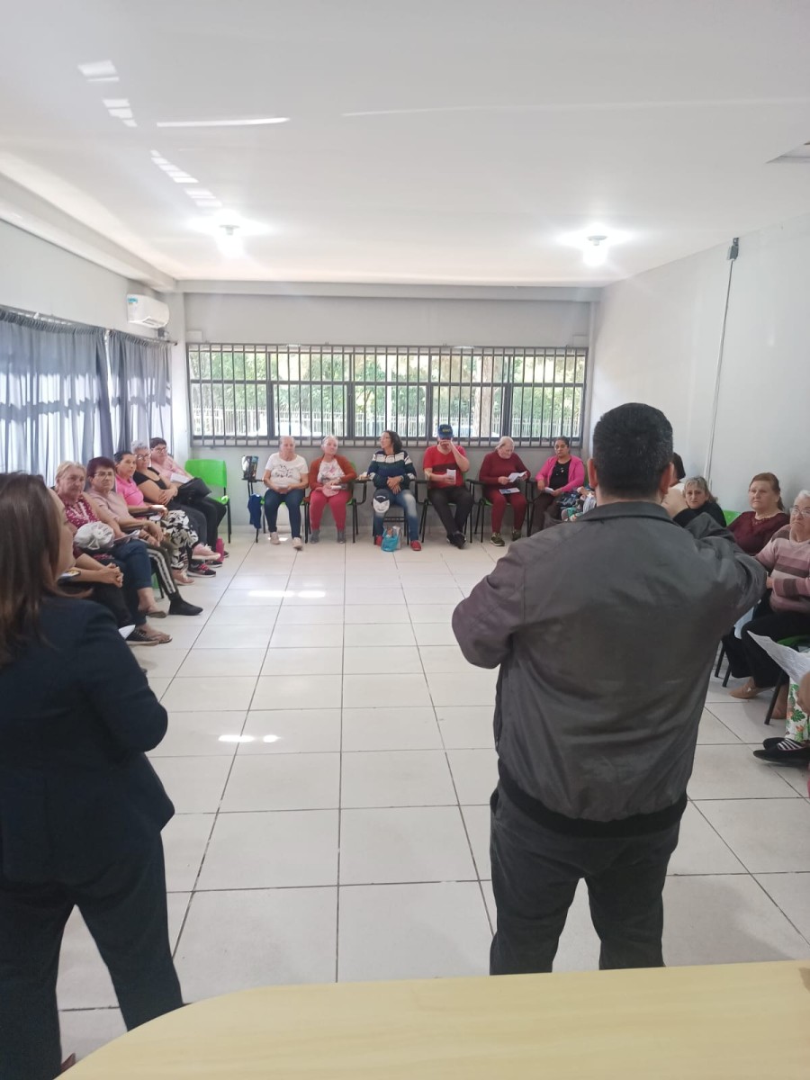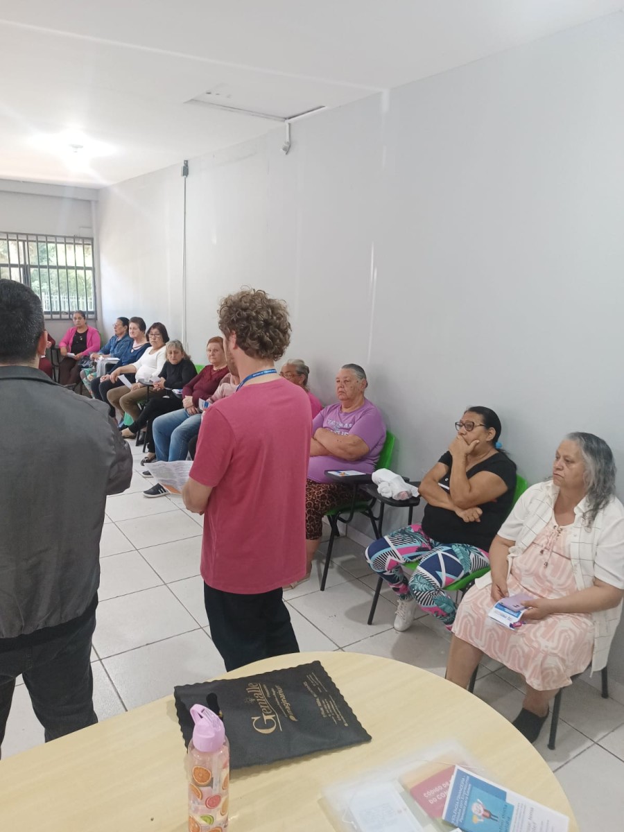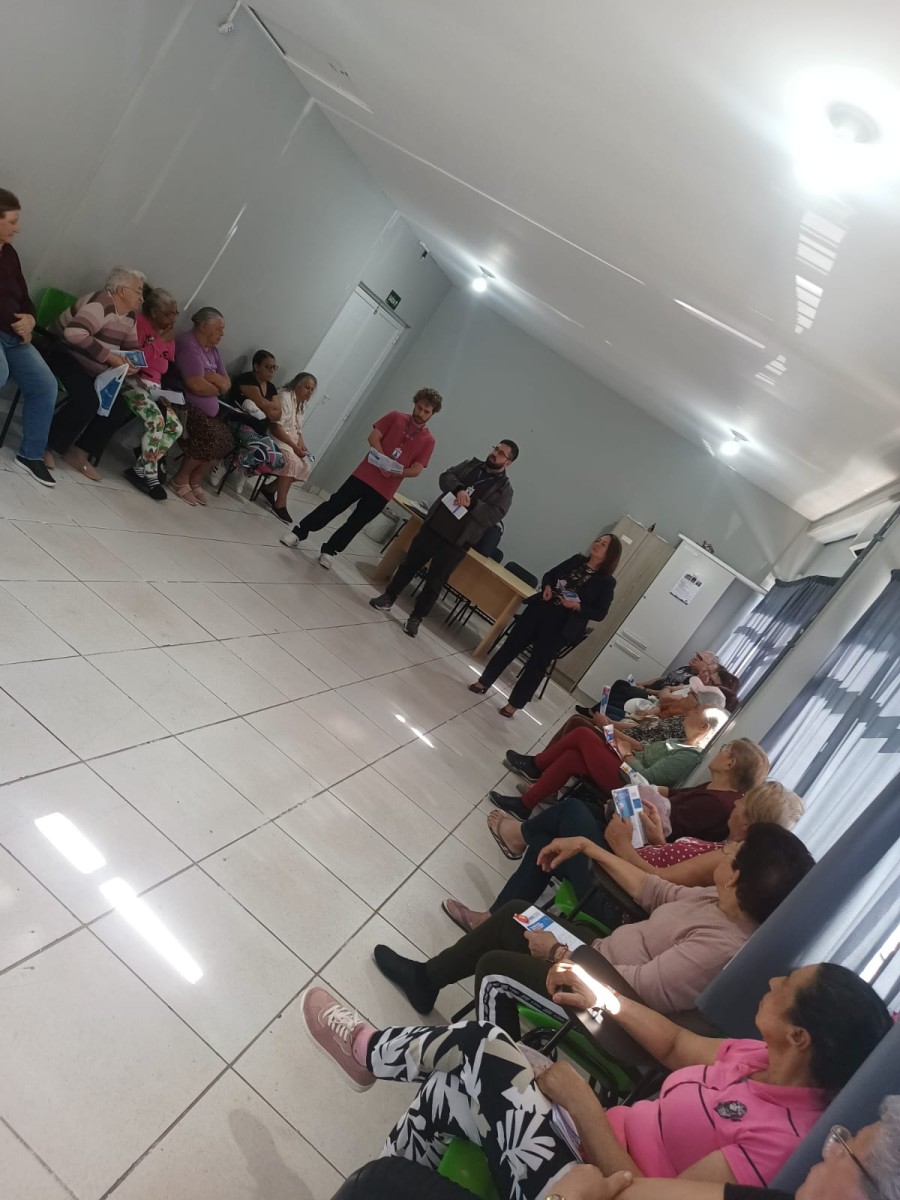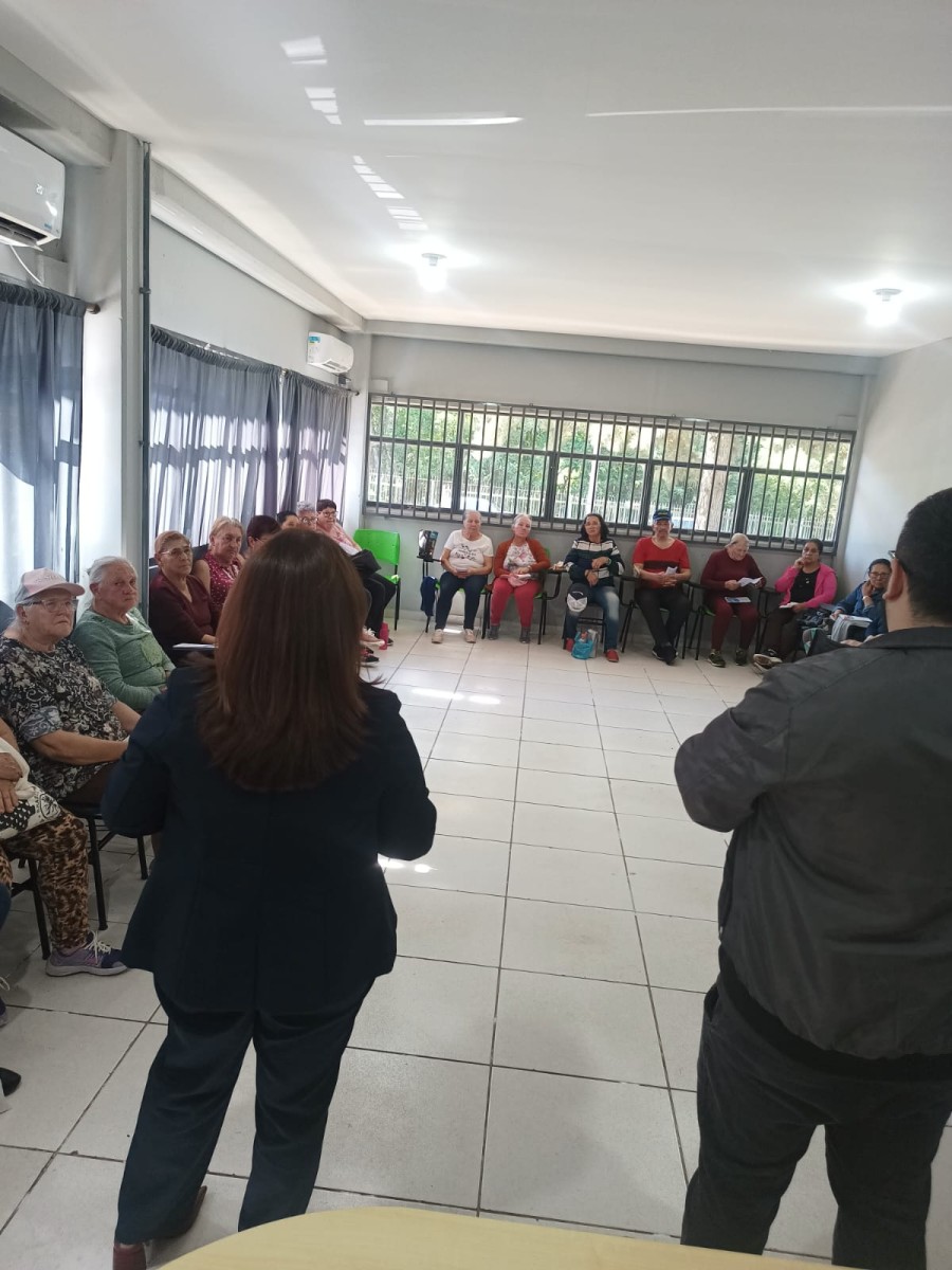 Durante o encontro, a diretora do Procon, Roseli Battisti; o chefe do setor, Jean Monteiro e o agente fiscal de Defesa do Consumidor, André Tomazoni, conversaram com o grupo sobre situações comuns enfrentadas por consumidores idosos, como cobranças indevidas, compras por telefone ou internet e empréstimos consignados.