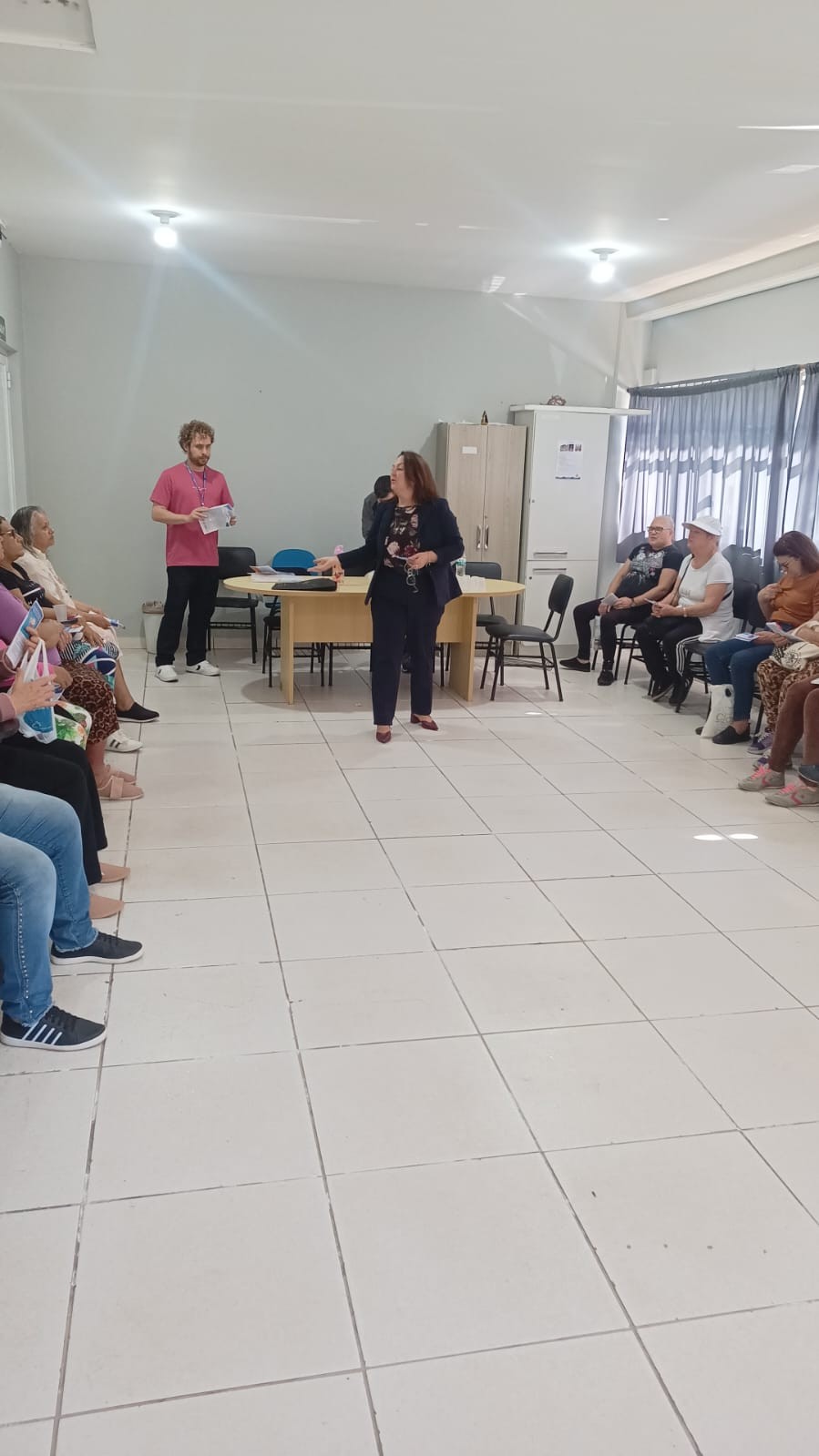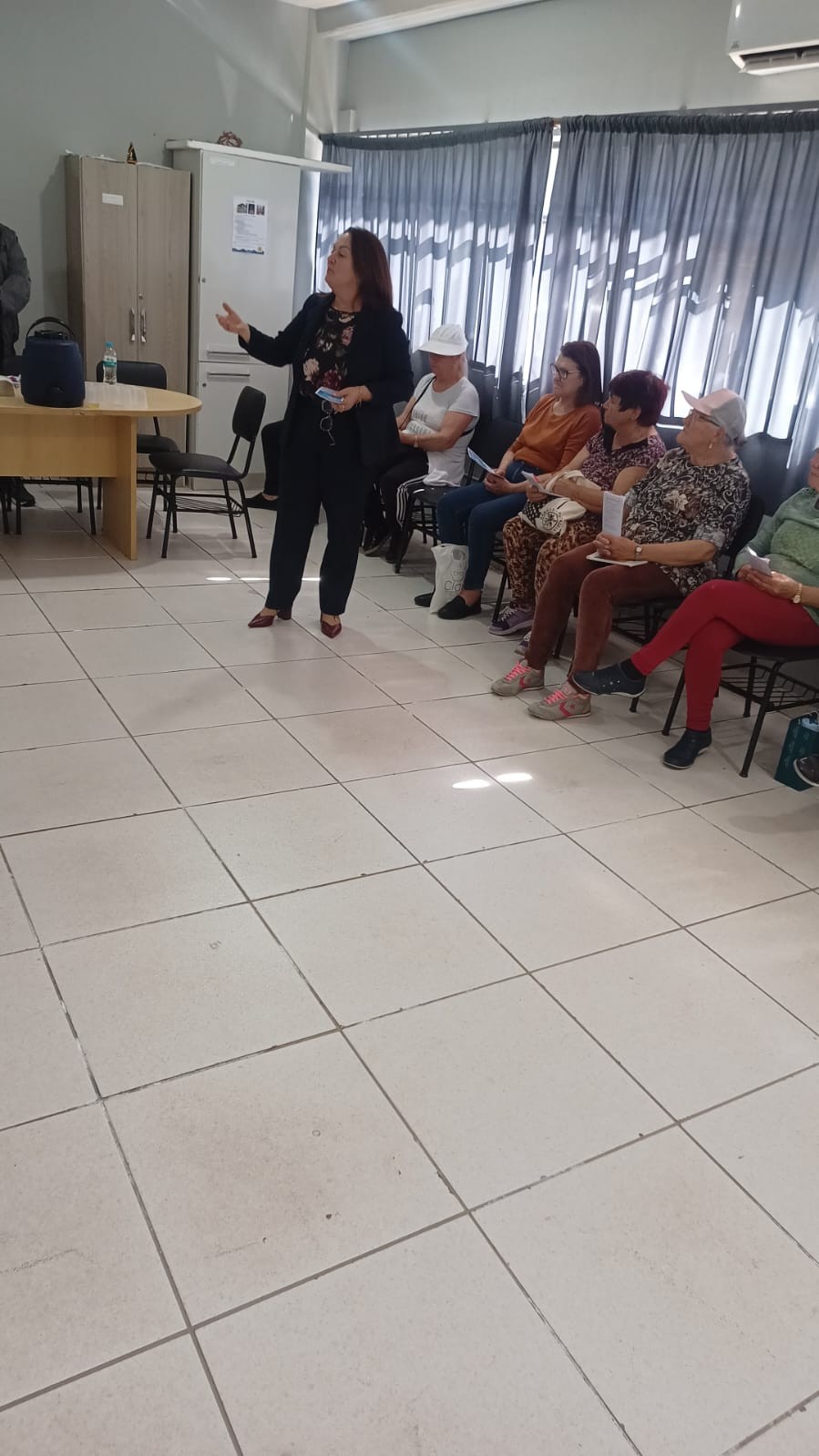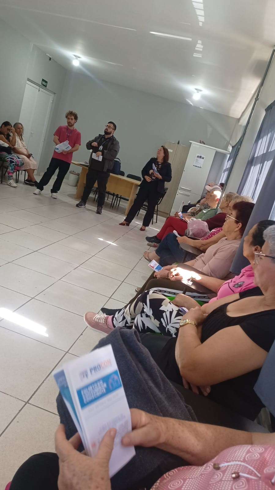 Durante o encontro, a diretora do Procon, Roseli Battisti; o chefe do setor, Jean Monteiro e o agente fiscal de Defesa do Consumidor, André Tomazoni, conversaram com o grupo sobre situações comuns enfrentadas por consumidores idosos, como cobranças indevidas, compras por telefone ou internet e empréstimos consignados.