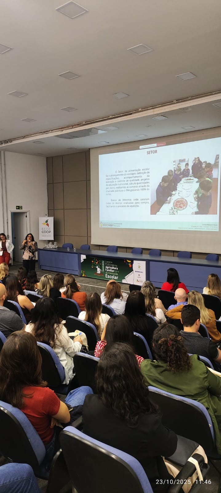 Também participaram do seminário, as representantes do Setor de Alimentação e Nutrição Escolar da Secretaria Municipal de Educação, através da chefe de Divisão Atendimento Alimentação Escolar, Cláudia Manica de Quadros e da nutricionista Aline Cláudia Chimento, que explanaram sobre a importância da aquisição de alimentos diretamente da Agricultura Familiar. “A parceria entre as cooperativas e o setor garante o fornecimento de produtos frescos e de qualidade, contribuindo para cardápios equilibrados e saudáveis. Esse investimento na alimentação escolar é um investimento em educação e equidade, e Erechim tem sido exemplo para outros municípios do Estado”, ressaltaram.