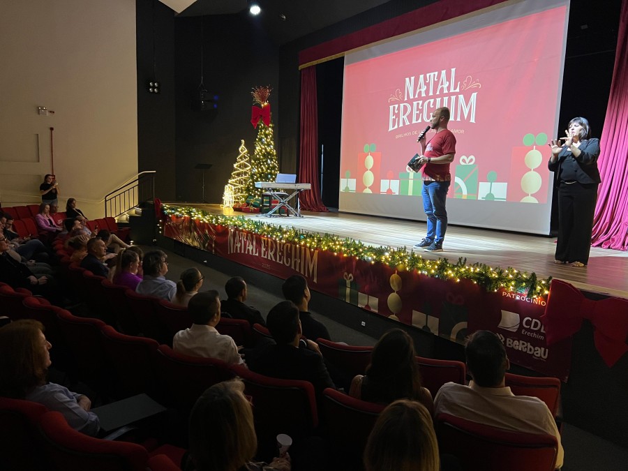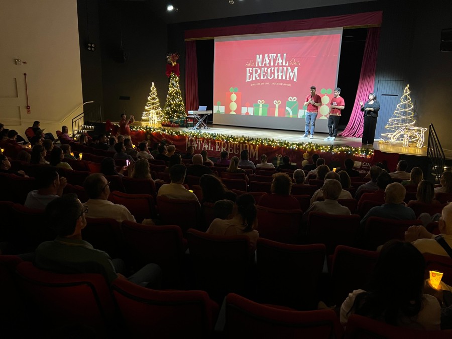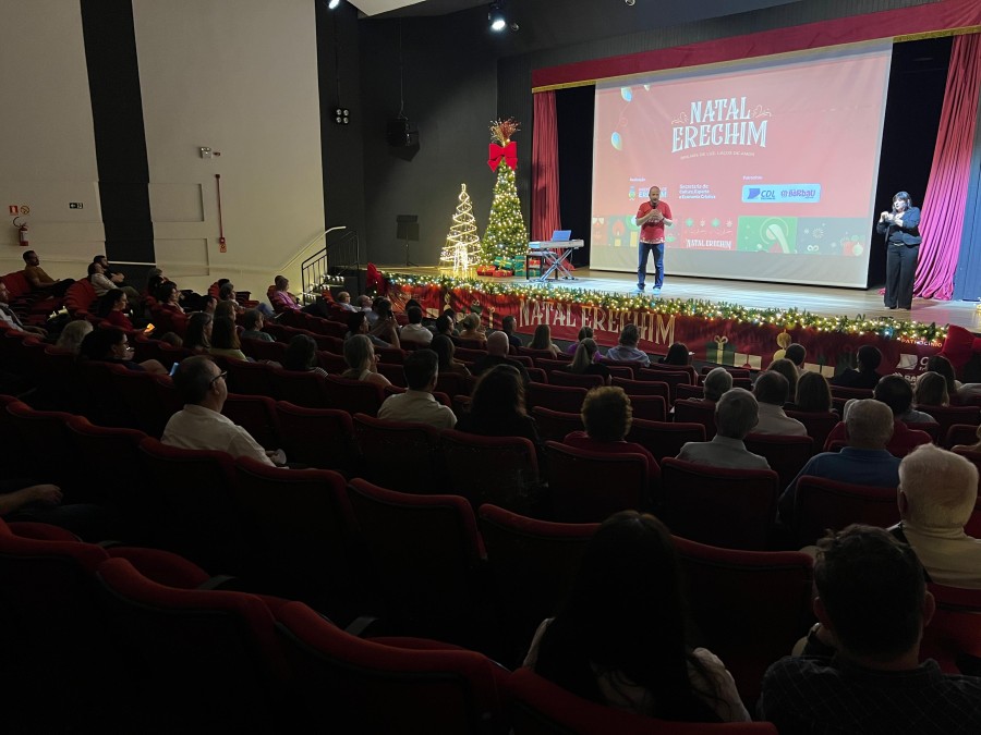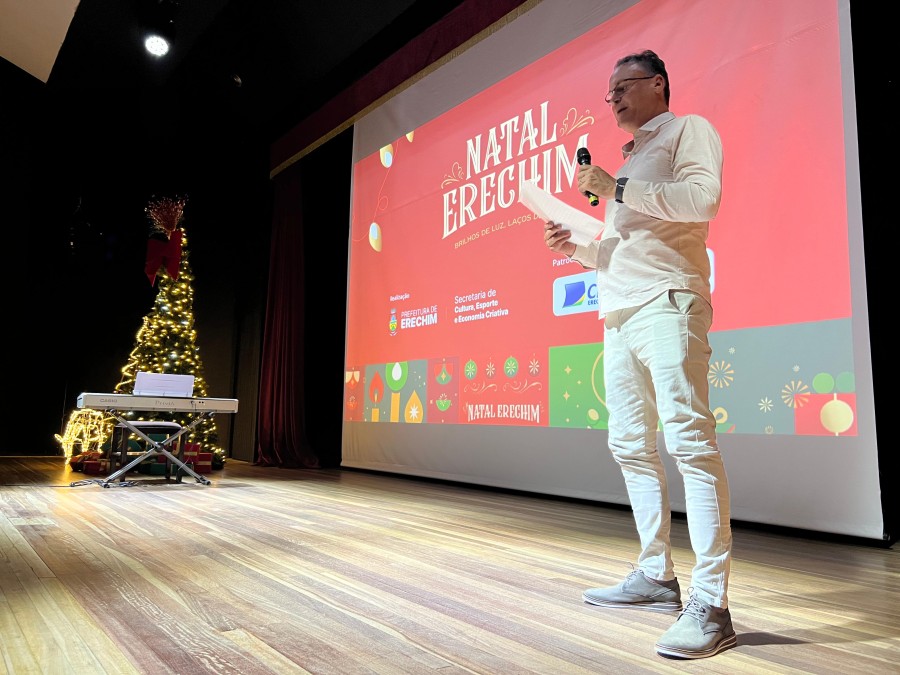 A magia do Natal já tomou conta de Erechim. A Prefeitura, por meio da Secretaria Municipal de Cultura, Esporte e Economia Criativa, realizou o lançamento oficial do Natal Erechim 2025 – Brilhos de luz, laços de amor, em uma noite marcada por emoção, música e pela apresentação da programação que vai transformar a cidade em um grande palco de celebração.