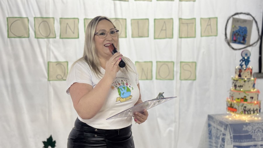 A diretora Manoela Basegio ressaltou o sentimento de união e gratidão que define a história da EMEI Irmã Consolata, lembrando o esforço de todos que ajudaram a construir esse legado. “Este é um momento de muita emoção para todos nós, afinal hoje celebramos 20 anos de trabalho na Educação Infantil. São duas décadas de sorrisos, descobertas, aprendizagens e evolução. O sonho que ganhou forma e tornou-se um espaço seguro e de acolhimento às crianças, famílias e colegas de profissão”, disse a diretora.