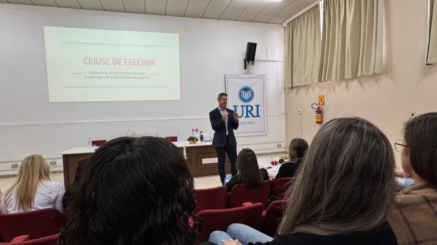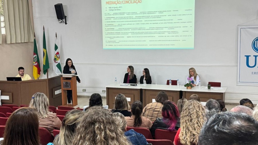 Realizado no anfiteatro do prédio 3 da URI Erechim, o encontro reuniu profissionais da Assistência Social e da Saúde, que integram a rede de proteção social do município. O objetivo foi fortalecer as práticas de conciliação e mediação como alternativas eficazes para solucionar divergências antes da judicialização, promovendo o diálogo e prevenindo litígios.