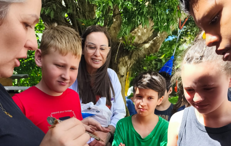 Os participantes puderam observar de perto a organização das abelhas, o funcionamento das colmeias e a forma como esses pequenos insetos transformam flores em vida. A curiosidade e o cuidado marcaram a vivência, que permitiu às crianças e adolescentes se aproximarem da natureza de forma sensível e respeitosa.