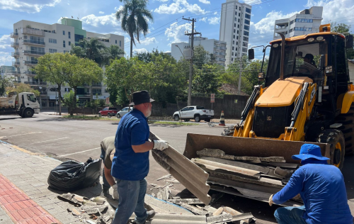 Equipes iniciam força-tarefa com 12 frentes de trabalho para recolhimento de entulhos após o granizo em Erechim