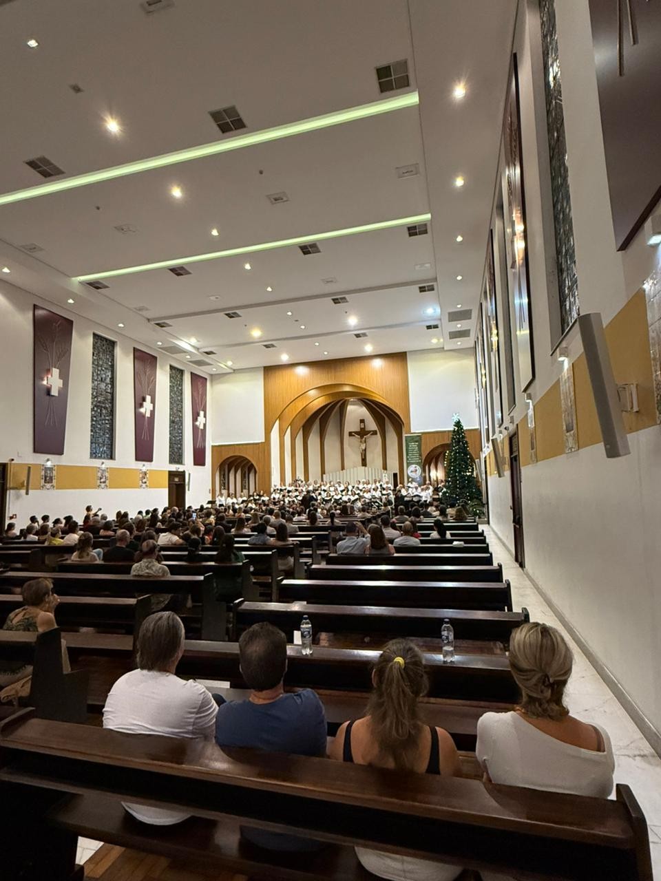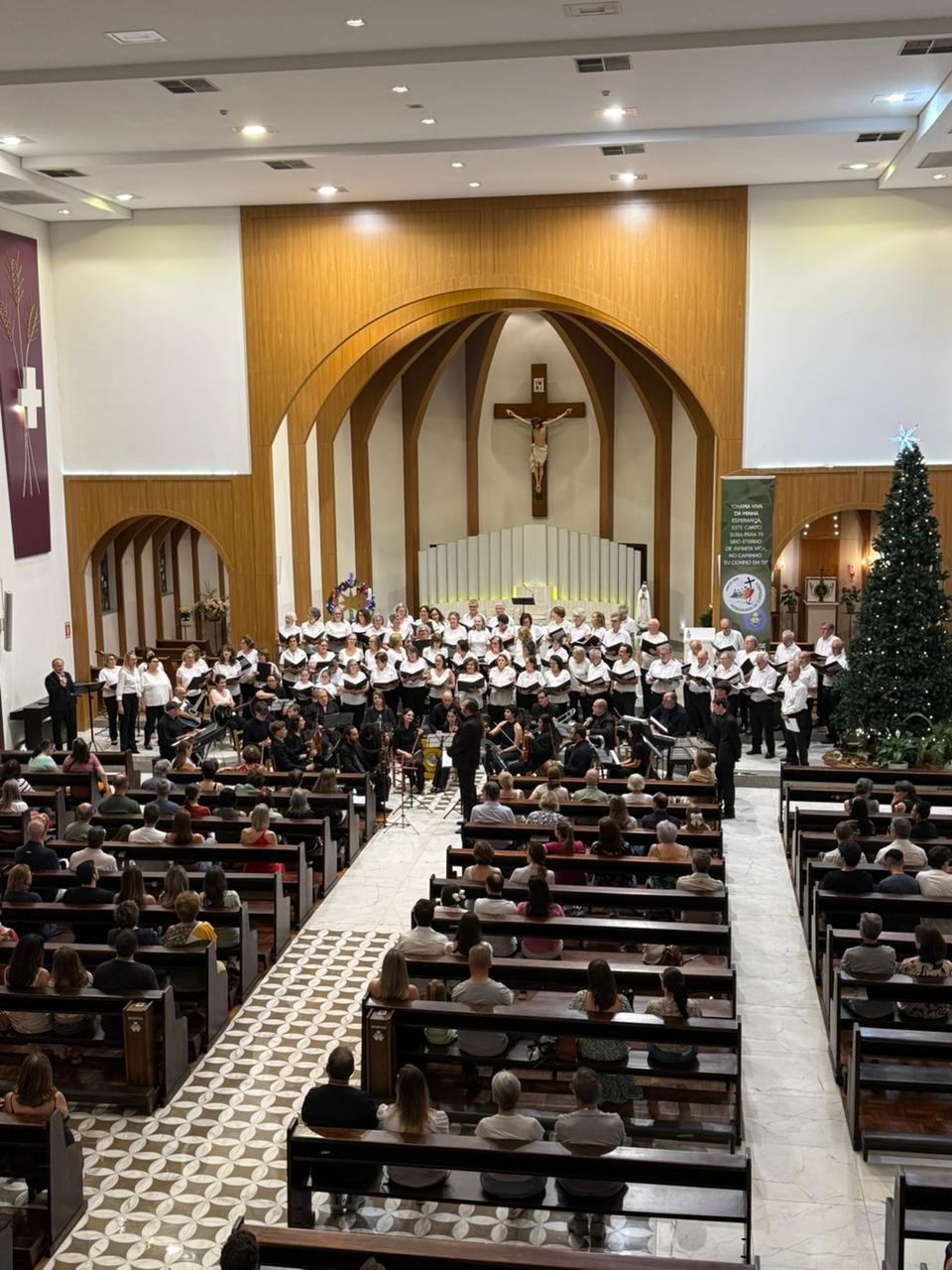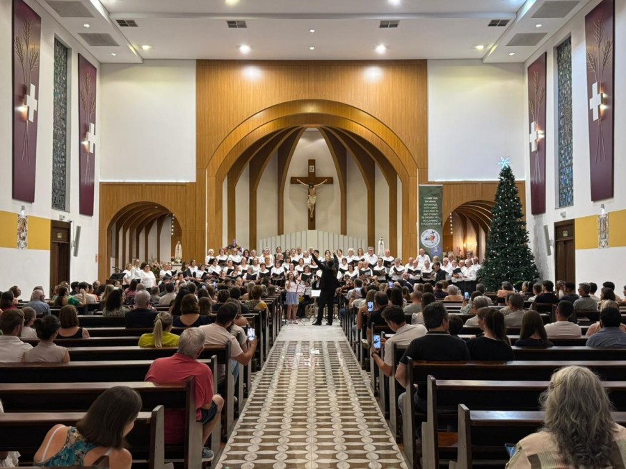 O Santuário Nossa Senhora de Fátima recebeu nesta sexta-feira (5), a 10ª edição do Natal da Amizade, uma cantata natalina que emocionou o público com música, espiritualidade e solidariedade. O espetáculo aconteceu logo após a missa, reunindo diversos coros e orquestras da região em uma noite dedicada ao encontro e à renovação da esperança.