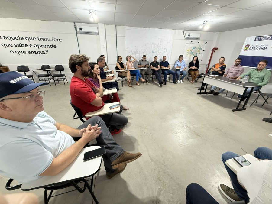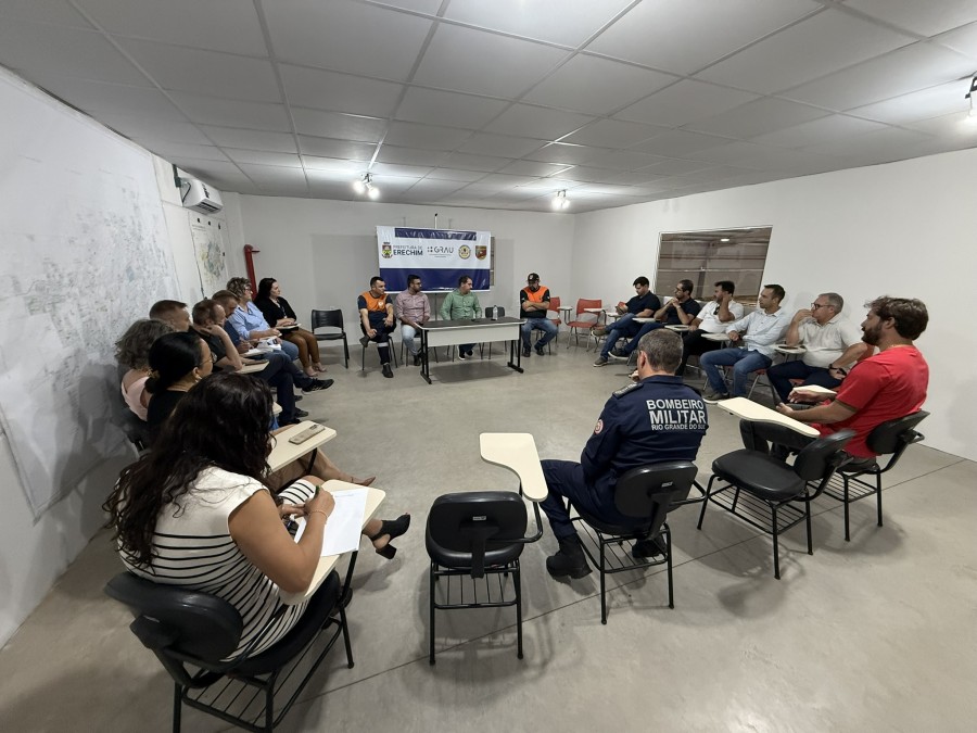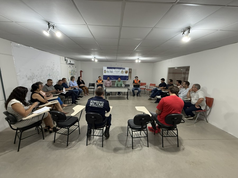 Encontro desta segunda-feira (8) definiu ações do pós-temporal e orientações sobre telhas, lonas e benefícios às famílias afetadas.