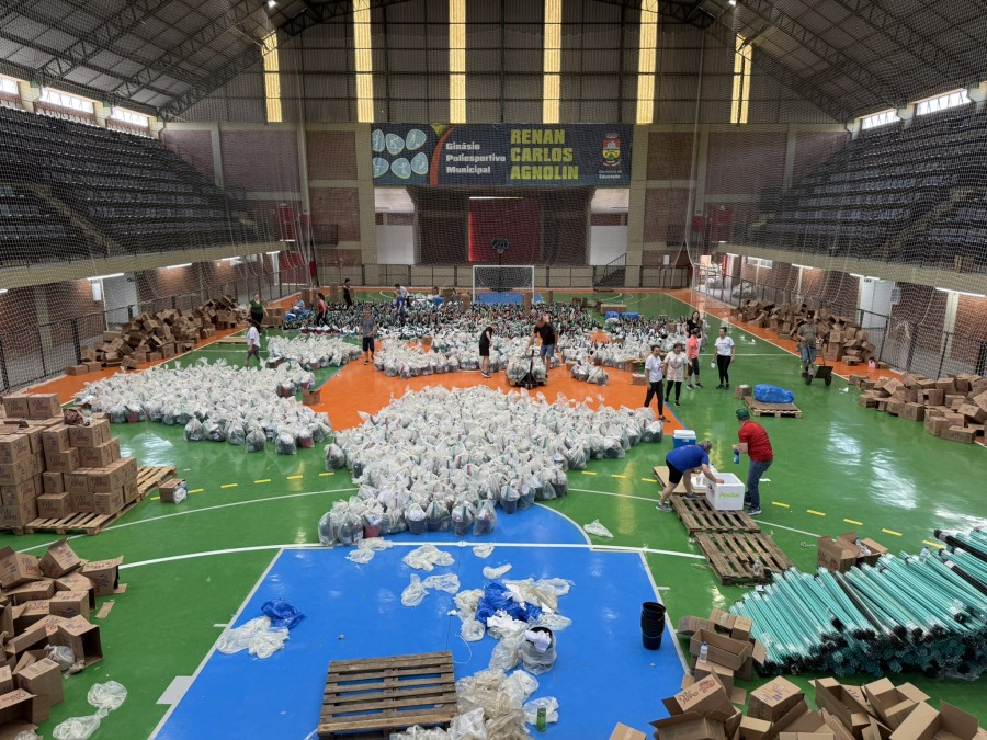 A Prefeitura informa que nesta sexta-feira (12), acontece a última entrega referente à primeira etapa dos donativos recebidos de Recursos Federais. Esses itens são distribuídos em ciclos de 30, 60 e 90 dias, conforme orientação Nacional, e são exclusivos para famílias atingidas pelo temporal e em situação de vulnerabilidade social.