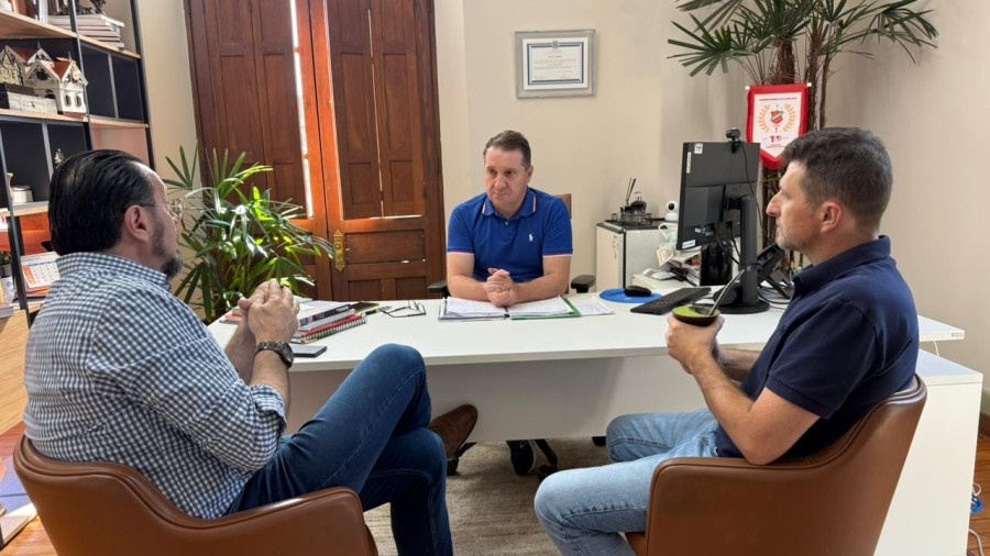 O prefeito de Erechim, Paulo Polis, recebeu nesta sexta-feira (19), no Gabinete do Executivo Municipal, membros do Conselho Deliberativo da Fundação Hospitalar Santa Terezinha de Erechim (FHSTE). O encontro teve como objetivo fortalecer o diálogo entre o Município e a instituição, além de alinhar pautas relacionadas à gestão, planejamento e ao futuro do hospital, que é referência regional em saúde. Estiveram presentes ao encontro o presidente eleito, Ari Fábio Vendruscolo e o ex-presidente do Conselho, Dino Tomazelli.