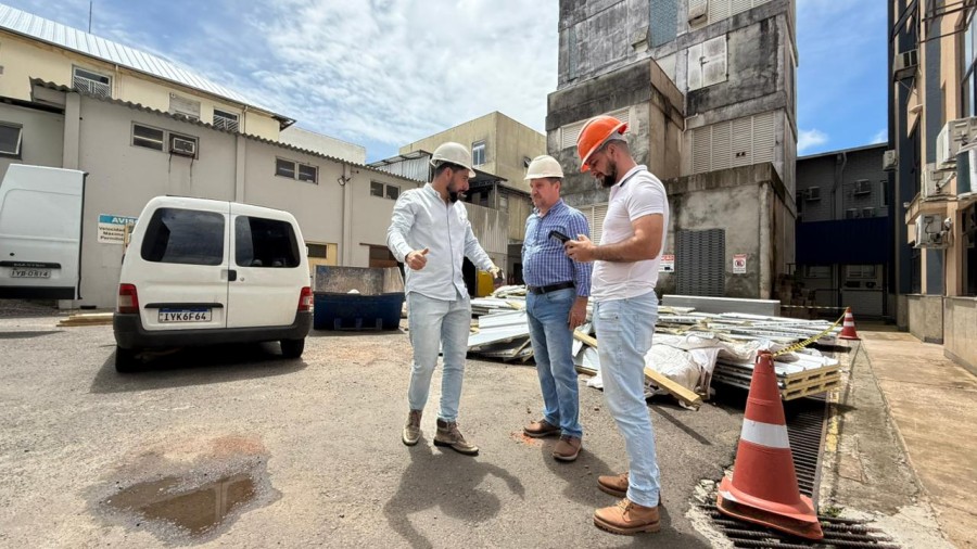 Na tarde desta segunda-feira (29), o prefeito de Erechim, Paulo Polis, esteve na Fundação Hospitalar Santa Terezinha de Erechim (FHSTE) para acompanhar o andamento das obras de recuperação do telhado da instituição. A visita foi conduzida pelo diretor administrativo do hospital, Marcio Pires, e pelo engenheiro do hospital, João Pedro Rinaldo.
