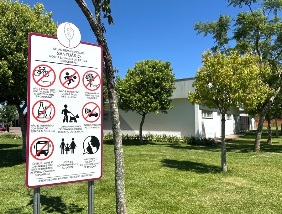 Apesar de acolher diferentes formas de presença, o Santuário de Fátima mantém sua identidade religiosa, o que exige respeito por parte de quem frequenta o local. Placas distribuídas ao longo da esplanada orientam os visitantes sobre regras básicas, como a proibição do consumo de bebida alcoólica, do uso de som alto, de jogar bola, de circular sem camisa e a necessidade de manter cães com guia, além do recolhimento de dejetos. "Este é um lugar de oração. Muitas pessoas vêm aqui para um momento de silêncio e recolhimento, especialmente próximo ao monumento, ao velário e à entrada do Santuário. Nos demais espaços, a convivência é possível, mas de forma amistosa e respeitosa", pontua o padre.