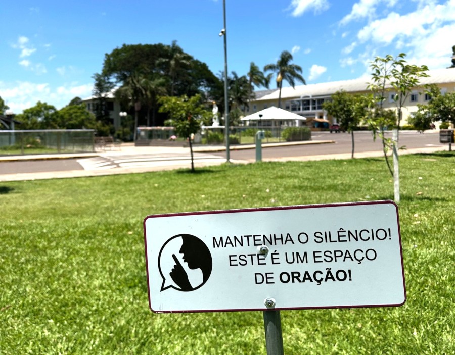 Área aberta, arborizada e gratuita é cada vez mais adotada pela comunidade para momentos de lazer e convivência, ao mesmo tempo em que orienta sobre respeito ao silêncio, às normas do espaço e à preservação do caráter sagrado
