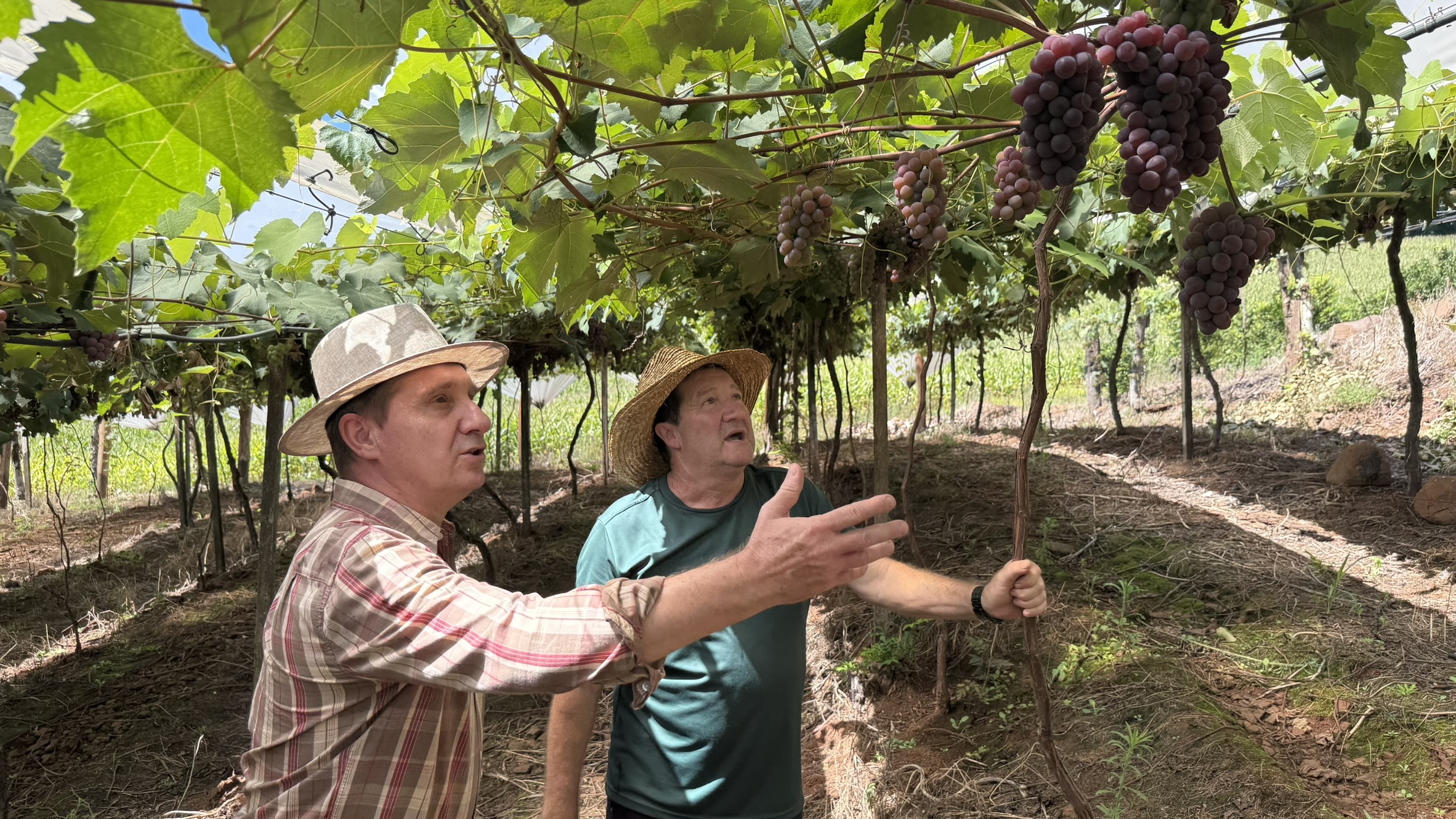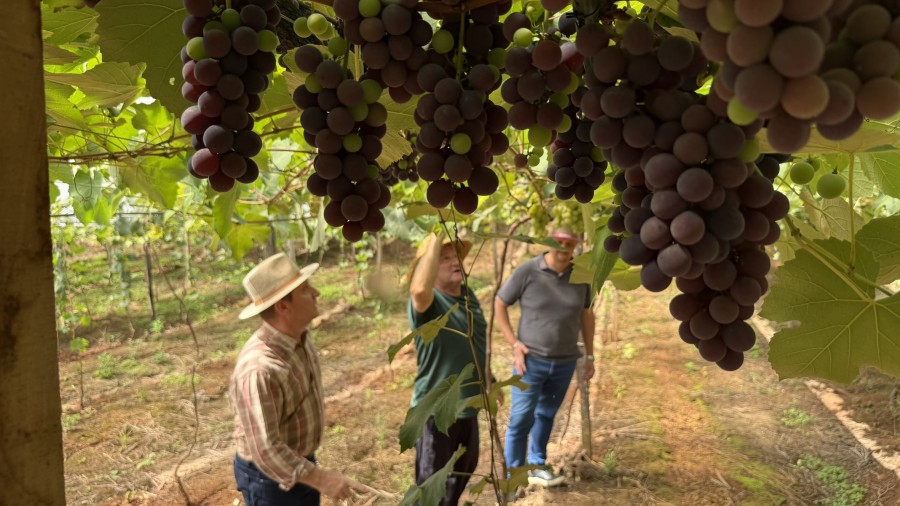 Nesta quinta-feira (15), o prefeito Paulo Polis e o secretário de Agricultura, William Racoski, visitaram a propriedade do jovem produtor Jonatan Bandiera, beneficiado com R$ 5 mil do Programa Pró-Jovem Rural. O recurso está sendo utilizado para a compra de mudas e a instalação de um sistema de irrigação em um parreiral de uva, contribuindo para a qualificação da produção e maior eficiência no manejo da lavoura.