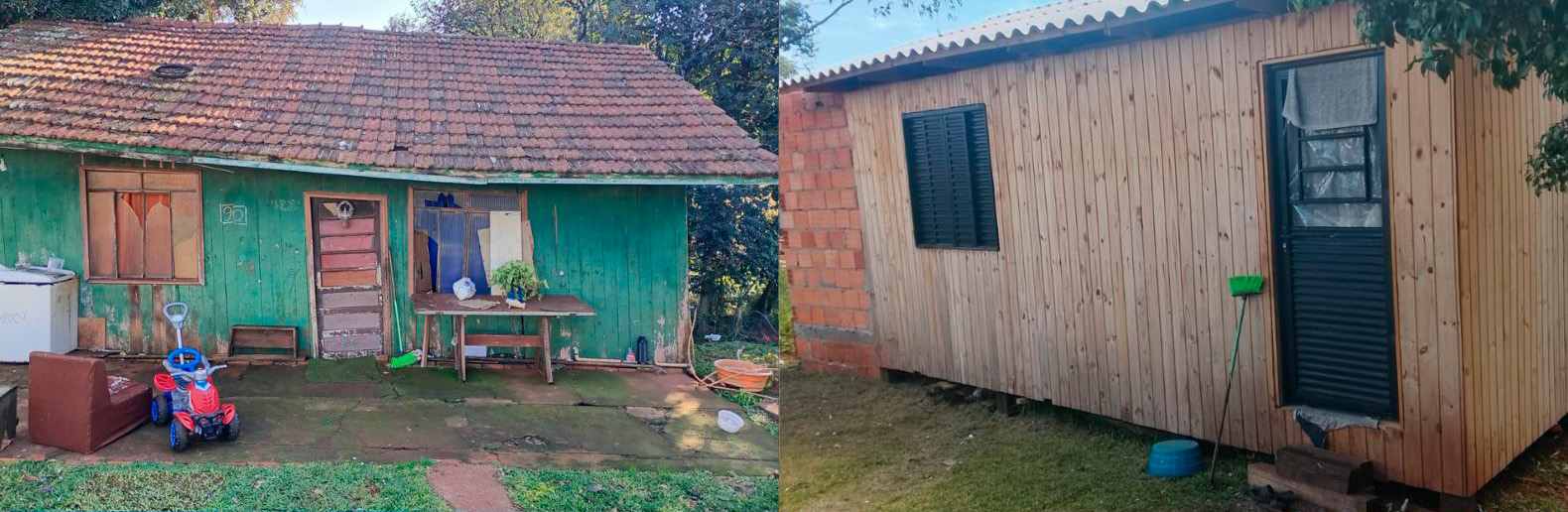 No bairro Novo Atlântico, uma moradora da Rua Reinaldo Soccol recebeu o Kit Madeira, possibilitando a recuperação da residência. Situação semelhante ocorreu no bairro Cristo Rei, onde uma moradora da Rua São Braz também foi beneficiada com o material, melhorando significativamente as condições do imóvel.