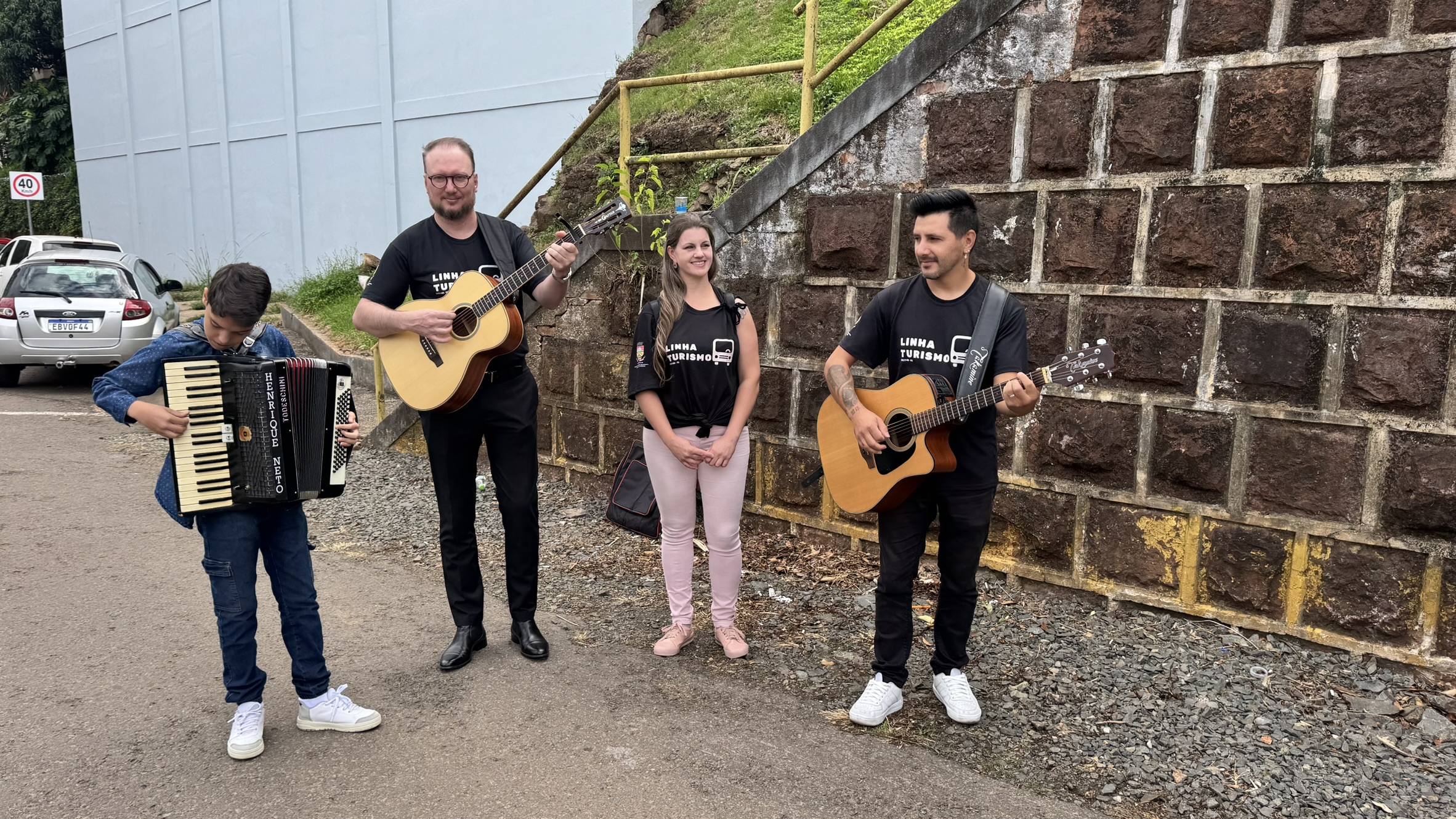 O momento foi finalizado com os músicos Moisés, Renato, Henrique e Daniela, que integram a Linha Turismo, interpretando a música ‘Erechim, História e Canto’.