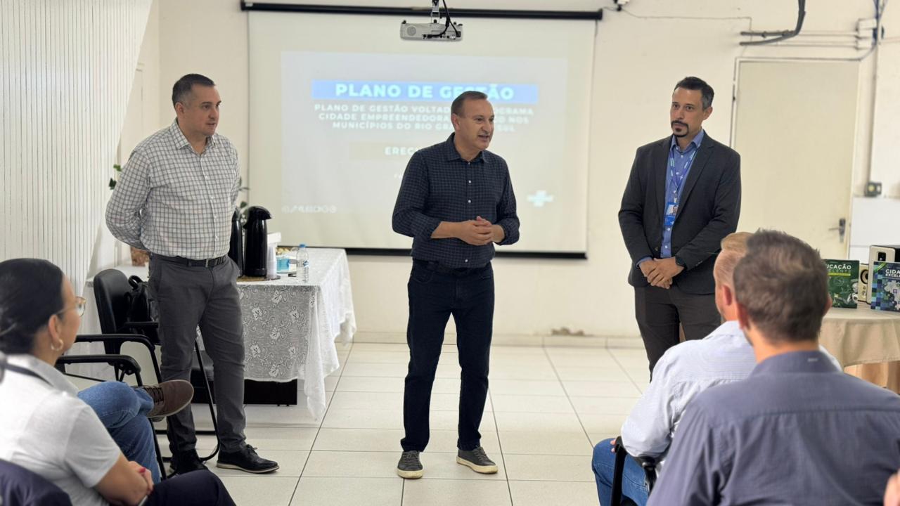A Prefeitura de Erechim recebeu, nesta quarta-feira (25), a apresentação do plano de gestão do programa Cidade Empreendedora, conduzida pelo Serviço Brasileiro de Apoio às Micro e Pequenas Empresas (Sebrae), parceiro estratégico do Município no fortalecimento da gestão pública e do ambiente de negócios.