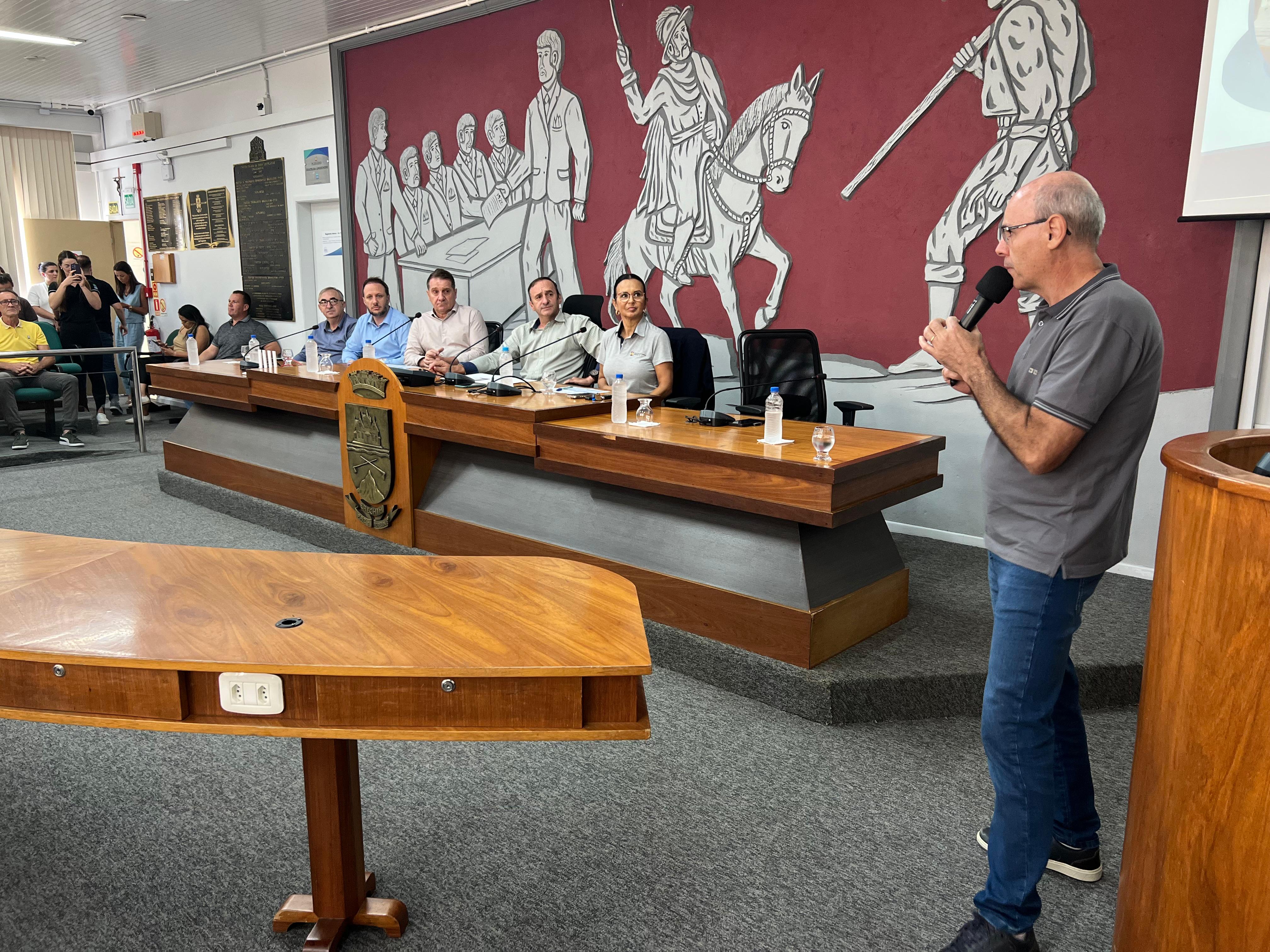Participaram do ato o prefeito Paulo Polis; o vice-prefeito Flávio Tirello; a secretária da Fazenda, Ana Oliveira; o secretário adjunto de Planejamento, Mobilidade Urbana e Segurança Pública, Flávio Piti; o presidente da Comissão de Economia e Finanças do Legislativo, vereador Juarez Bernardi; o coordenador de Finanças da Secretaria da Fazenda, Edson Kammler, responsável pela explanação técnica; o presidente da Câmara de Vereadores, Carlinhos Magrão; além de secretários municipais, vereadores, representantes da comunidade e imprensa.