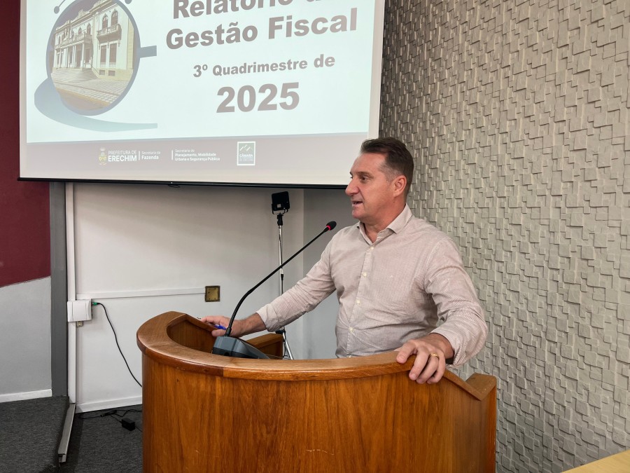 A Prefeitura de Erechim apresentou, na manhã desta quarta-feira (25), em audiência pública na Câmara de Vereadores, o Relatório de Gestão Fiscal referente ao terceiro quadrimestre de 2025 e o consolidado do exercício. Os números confirmam o equilíbrio das contas públicas e a manutenção da capacidade de investimento do município.