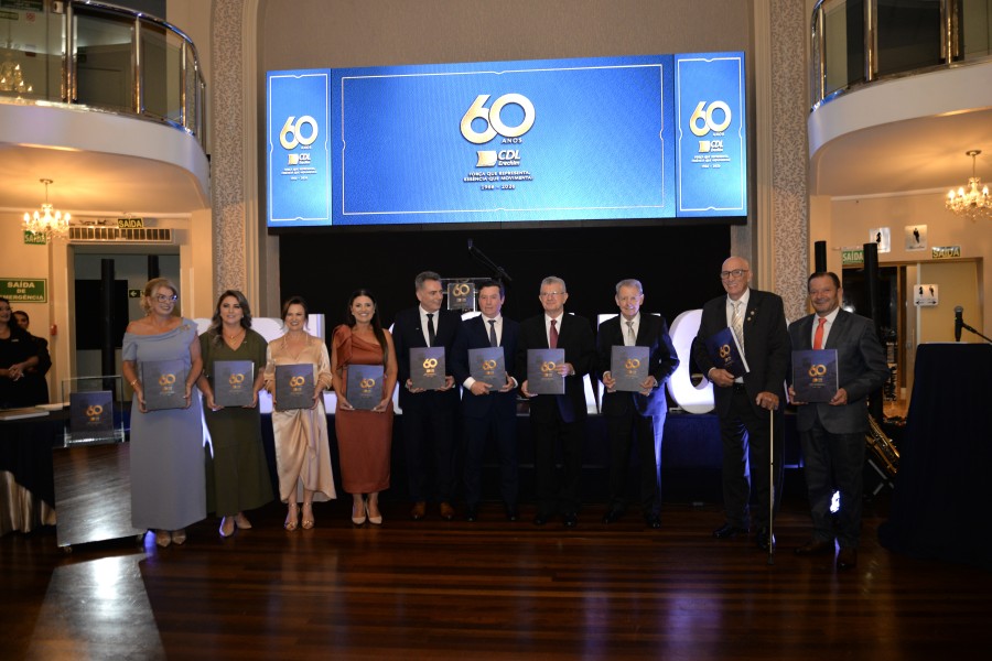 A Câmara de Dirigentes Lojistas (CDL) de Erechim celebrou, na noite desta sexta-feira (27), 60 anos de história com um jantar comemorativo e a posse oficial da diretoria para a gestão 2026-2028. O evento foi realizado no Salão Social do C.E.R. Atlântico e reuniu lideranças empresariais, autoridades e convidados.