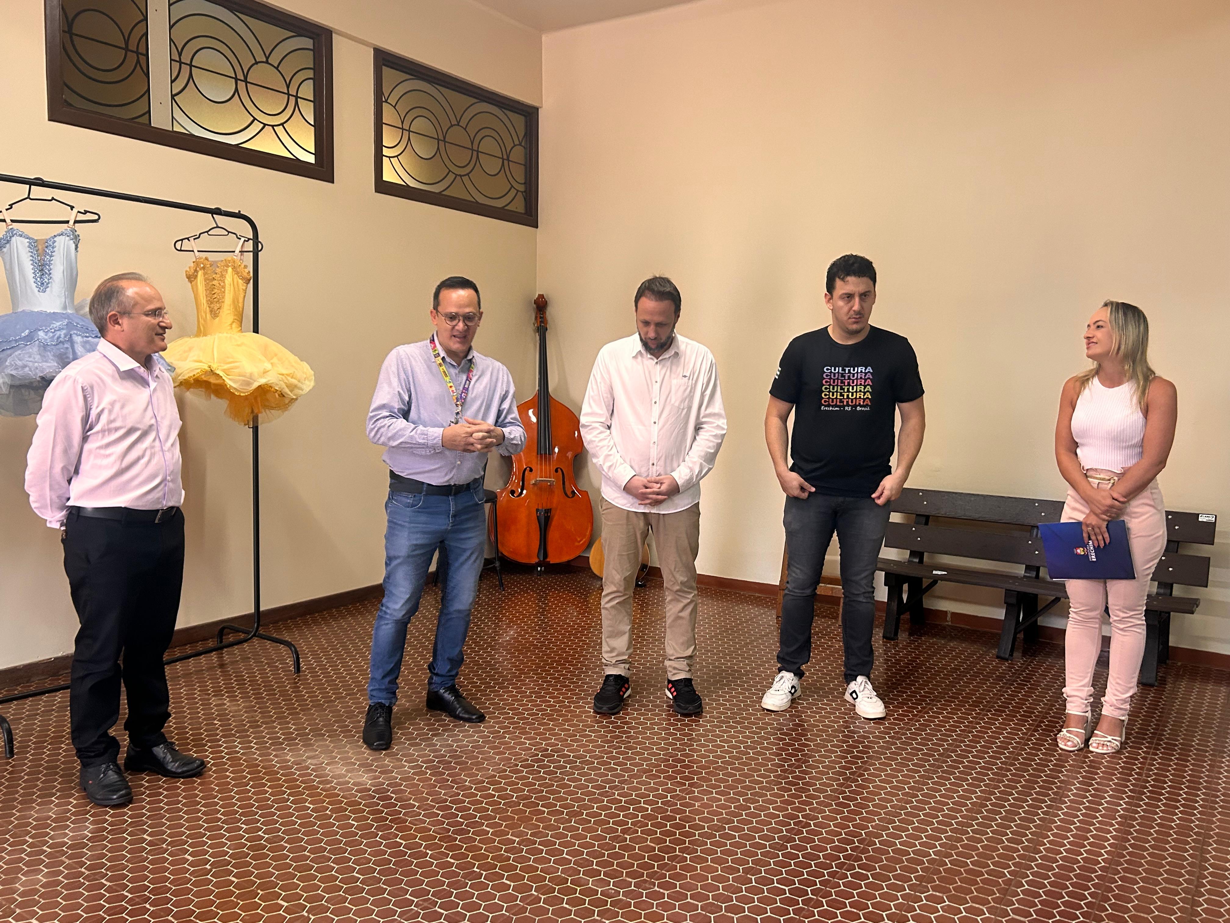 A atividade foi conduzida pela chefe de divisão Patrícia Forcellini e simbolizou o início das aulas e projetos artísticos promovidos pela Prefeitura de Erechim, por meio da Secretaria Municipal de Cultura, Esporte e Economia Criativa. Neste ano, 626 alunos participam de 22 cursos nas áreas de música, dança, teatro e artes visuais, fortalecendo o acesso à formação cultural no município. Também acompanharam o coordenador geral, Rodrigo Garcez e as coordenadoras de áreas Ângela Bortolassi, Viviane Fisch e Sandra Valandro.