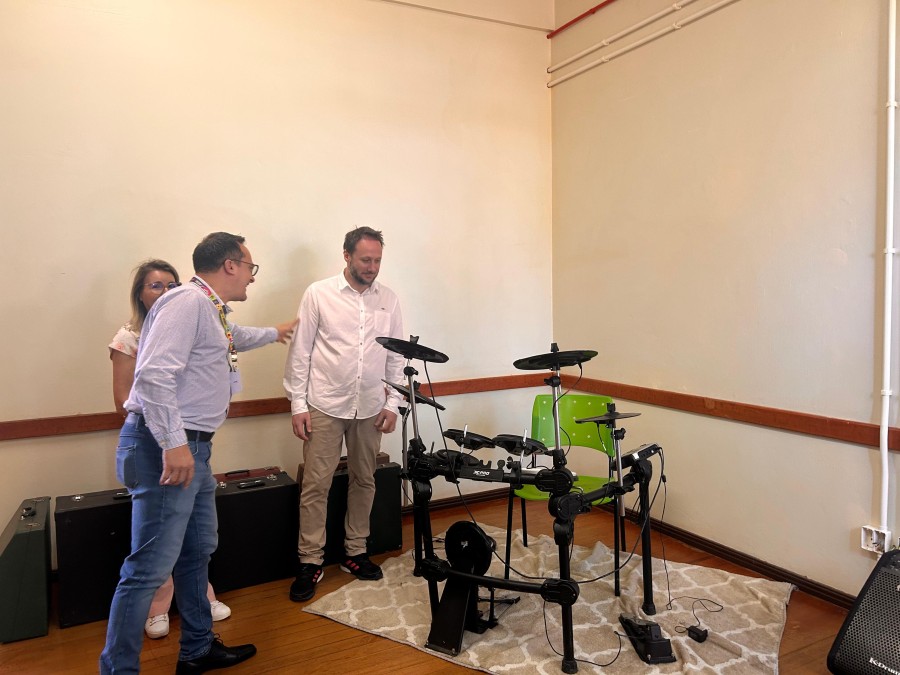A programação da aula inaugural contou ainda com um momento especial de espiritualidade e cultura. O padre Sala, reitor do Santuário Nossa Senhora de Fátima, realizou uma bênção especial, reforçando o espírito de união e esperança que envolve o projeto. Para marcar oficialmente o início das atividades, o professor de canto Roniel Araújo emocionou o público com uma apresentação musical, tornando a manhã ainda mais inspiradora.