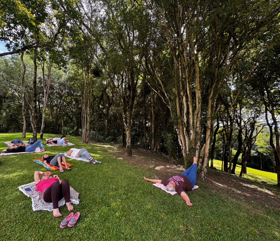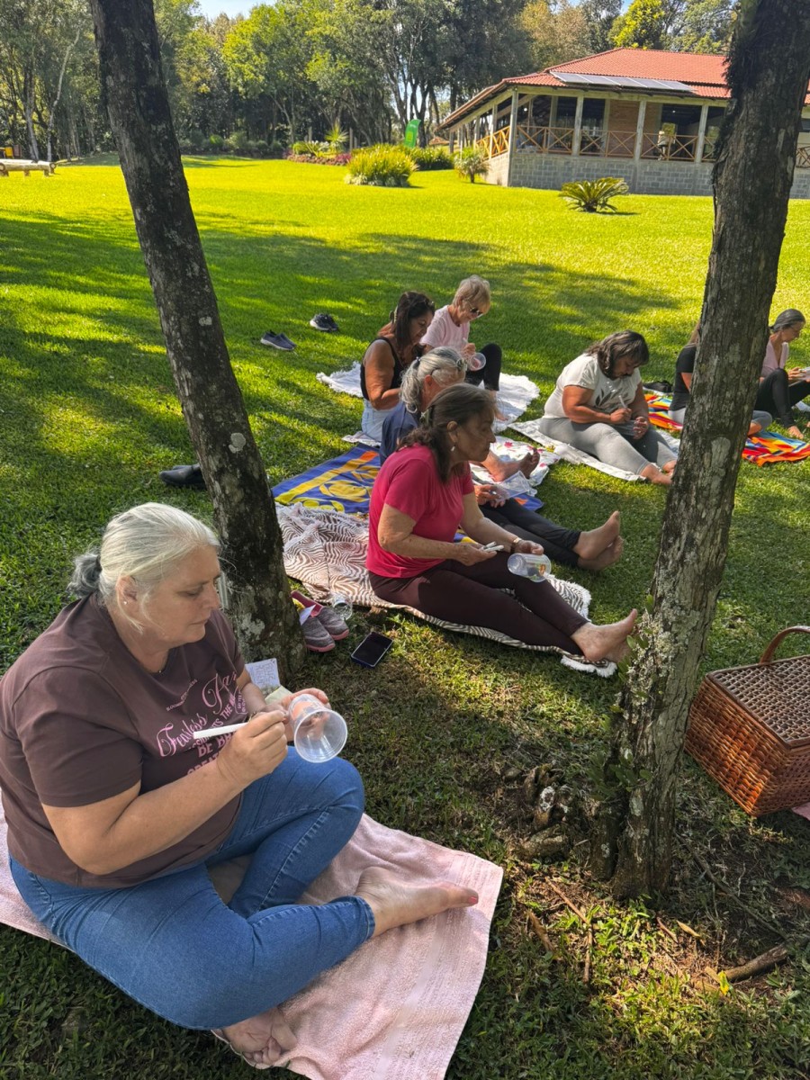 A atividade foi conduzida pela psicóloga Kátia Dick e contou com o apoio da psicóloga Suzana Viola Rodrigues. O grupo é vinculado à UBS Centro, unidade coordenada pela enfermeira Livânia Orso. Realizado ao ar livre, o encontro proporcionou às participantes um ambiente acolhedor, em contato com a natureza, favorecendo momentos de relaxamento, meditação e troca de experiências.