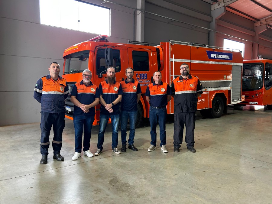 Eles foram recebidos pelo coordenador da Defesa Civil de Erechim, Vagner Manica, e pelo presidente da Força Voluntária do Alto Uruguai, Ronaldo Manica, que apresentaram a estrutura, os equipamentos e os protocolos de atuação adotados no município.