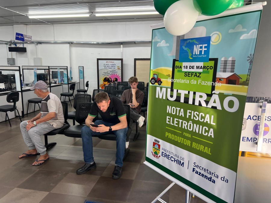 A Secretaria Municipal da Fazenda de Erechim realiza nesta quarta-feira (18) o Mutirão Nota Fiscal Fácil, uma ação voltada à capacitação de produtores rurais para o preenchimento correto da Nota Fiscal Eletrônica. A atividade acontece na sede da Secretaria e tem como foco orientar, na prática, sobre o uso do sistema, além de auxiliar na emissão e regularização da Nota Fiscal de Produtor Rural.