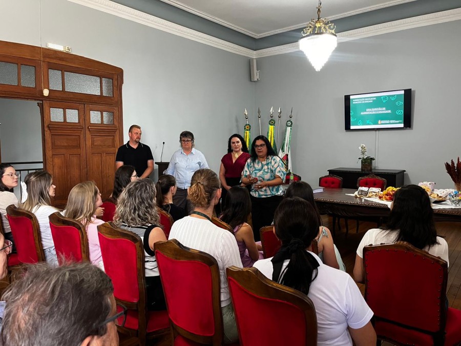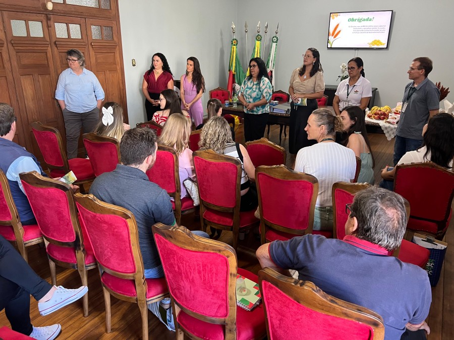 Participaram do encontro a secretária de Administração, Aline da Costa, o secretário de Agricultura, Abastecimento e Segurança Alimentar, William Racoski, e a secretária de Educação, Verenice Lipsch, além de equipes técnicas da Prefeitura de Erechim. A comitiva visitante foi composta por membros do Executivo dos municípios de Capinzal, Ouro e Arabutã, técnicos da Epagri, nutricionistas de diferentes municípios, além de representantes dos setores de compras, licitações e jurídico.
