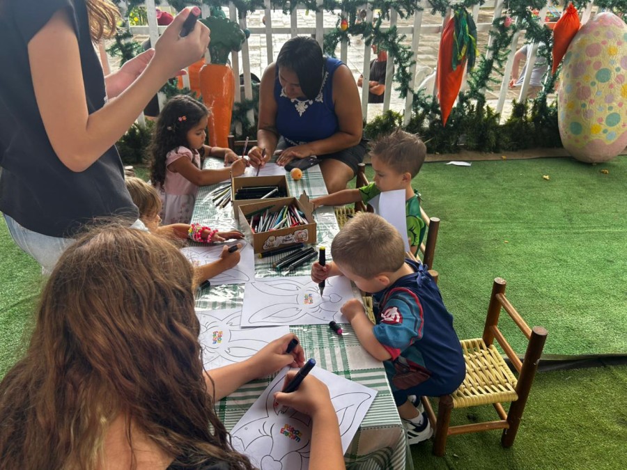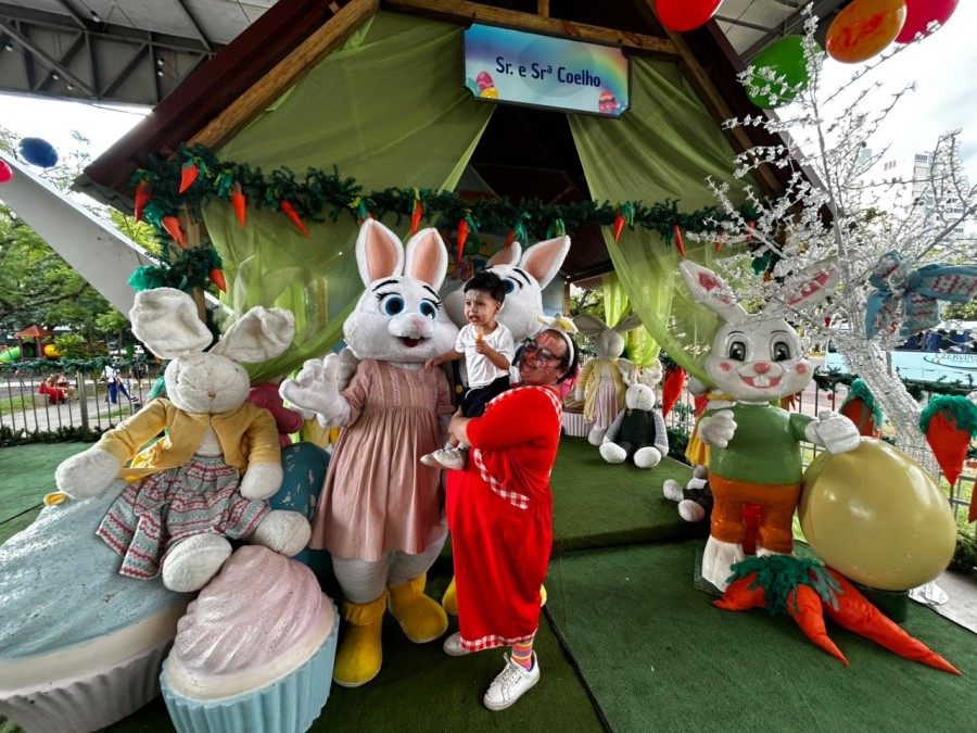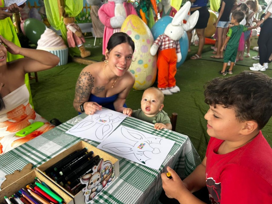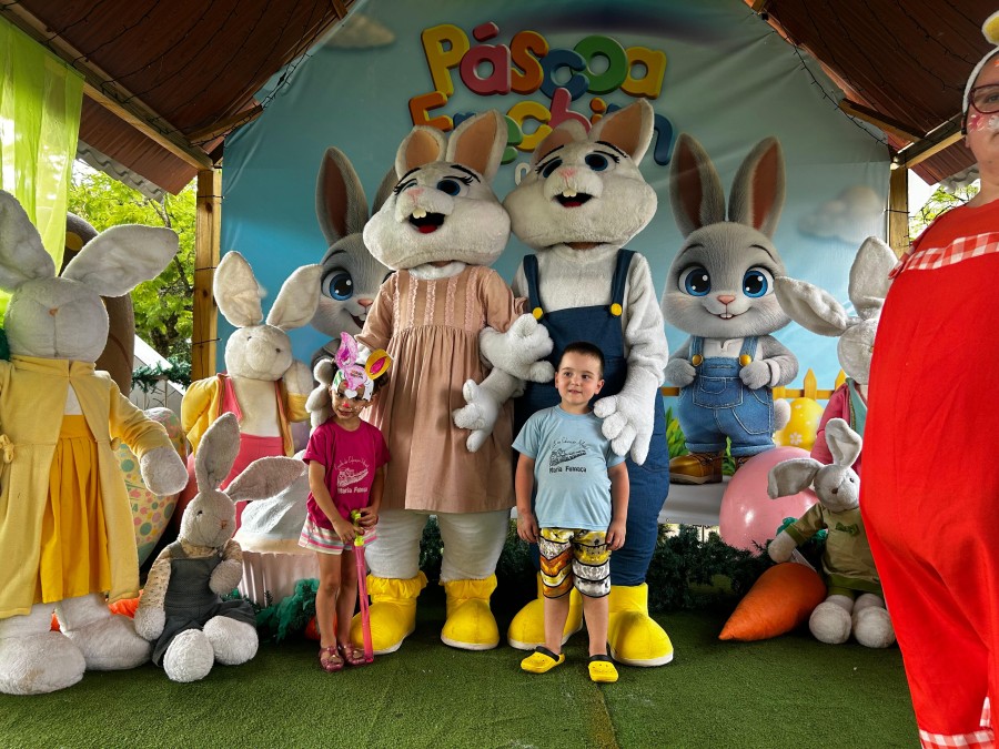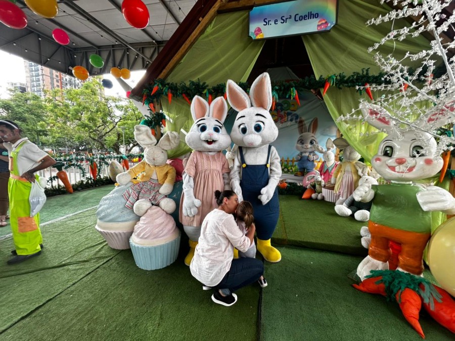 A presença dos carismáticos mascotes Sr. e Sra. Coelho ajudou a dar vida ao espírito da Páscoa, encantando o público e criando cenários de pura emoção. Oficinas temáticas, pintura de rosto, recreação infantil e momentos culturais fizeram parte da programação, sempre com grande participação da comunidade.